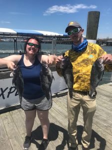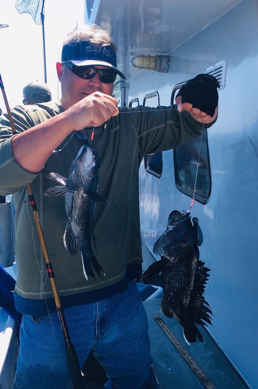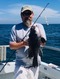Captain Chase Eberle of Chasin’ Tides Charters had a nice afternoon on the bay yesterday and a nice morning on the ocean today. Yesterday it was short rock, bluefish and flounder and today it was a nice pick of sea bass.