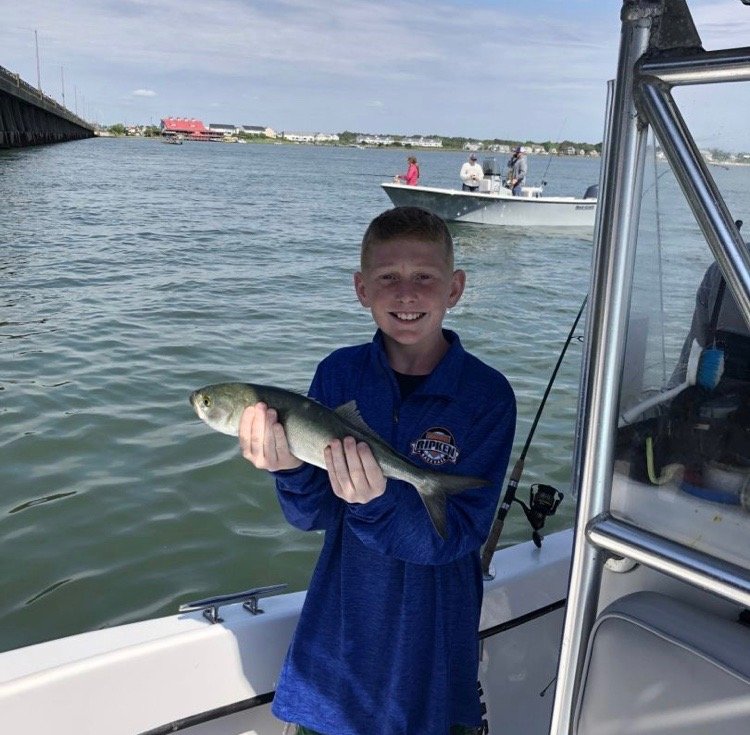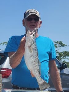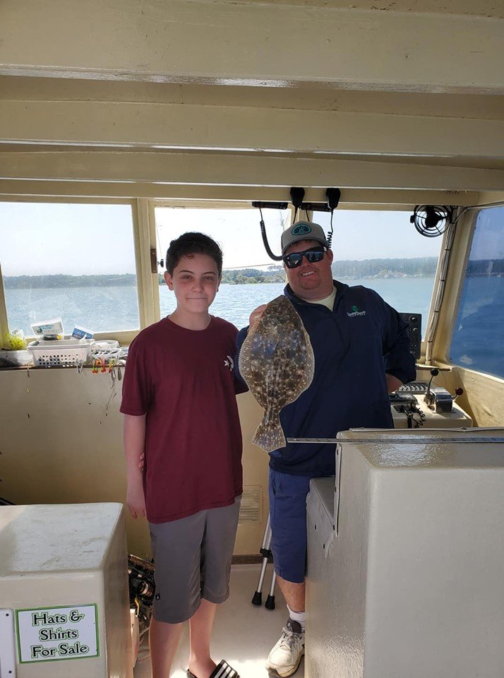 Captain Jason Mumford of Lucky Break Charters has been dodging boats on the bay this weekend and having some pretty good fishing when the conditions cooperate. Captain Jason has put his anglers on flounder, bluefish and small rockfish and his dock neighbor even had a bonus trout.