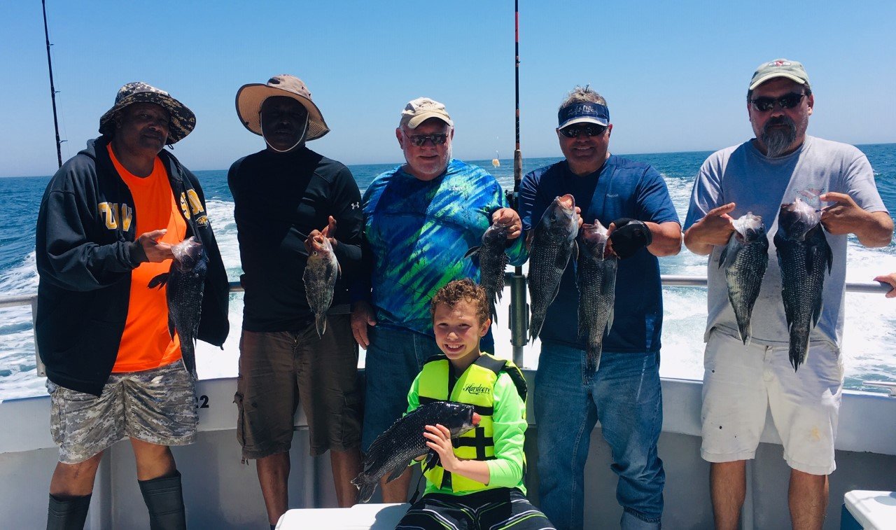 Captain Monty Hawkins of the Morning Star reported rough conditions on the way out this morning, but it calmed down nicely by this afternoon and he put his anglers on a “slug of sea bass.”