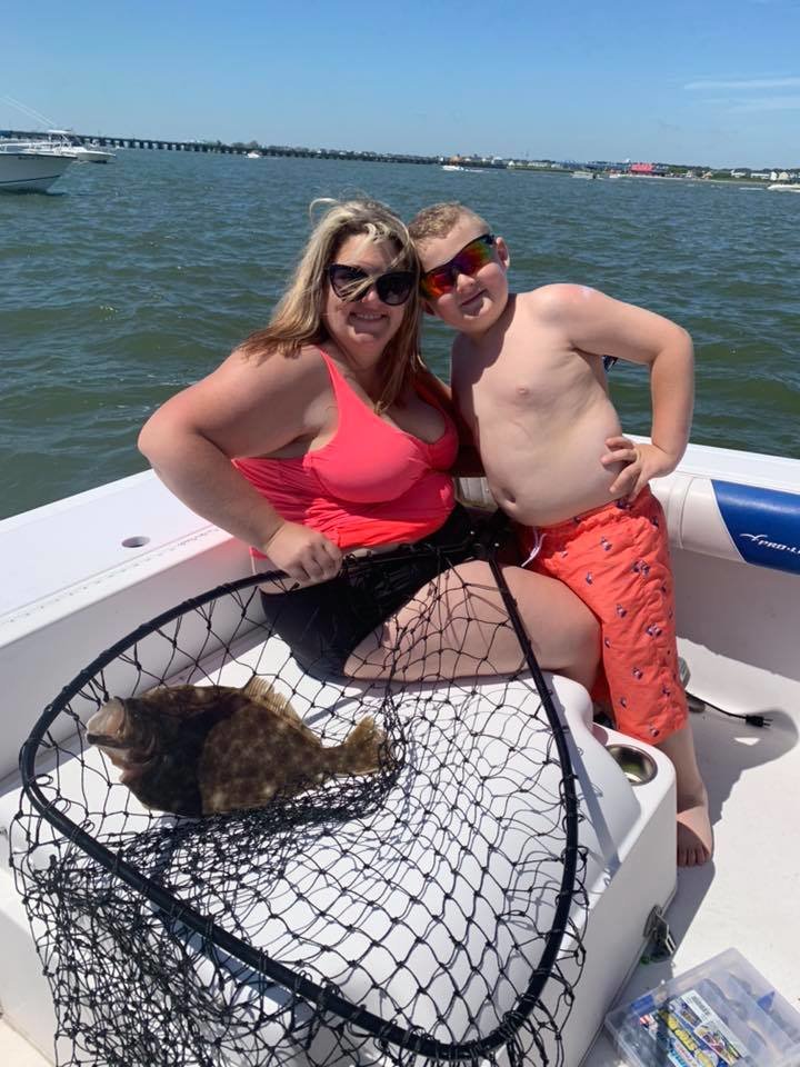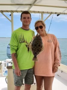 The Fish in OC Dale Timmons’ Deadly Double struck again for a lucky angler fishing the bay this afternoon. Amanda Wright was fishing with Anthony Wright when she landed this 20 1/2″ keeper flounder on a pink Deadly Double rig with a minnow fishing the east channel in front of the Lazy Lizard.