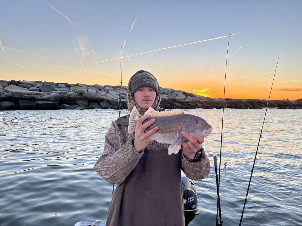Donnie Post headed out for a short trip this afternoon and made quick work of a 17″ keeper tautog while fishing the south jetty.