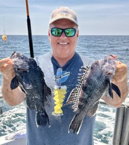 Captain Tony Battista of Saltwater Adventures had another great day of ocean structure fishing with some stud sea bass up to 18″.