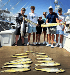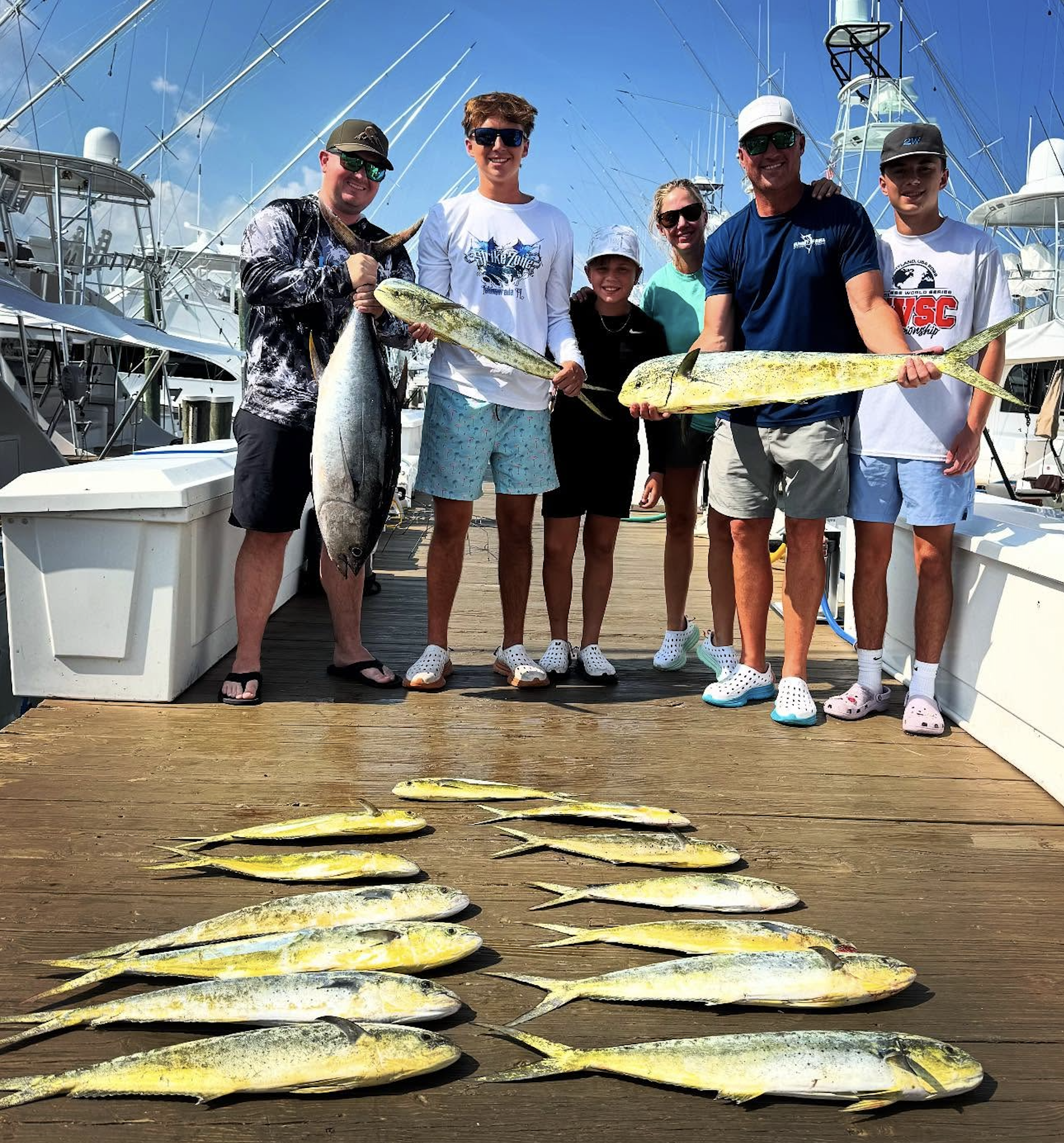 The crew of Boss Hogg with Captain Alex Beane had a great offshore trip today with a yellowfin tuna and a bunch of nice mahi.