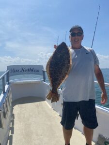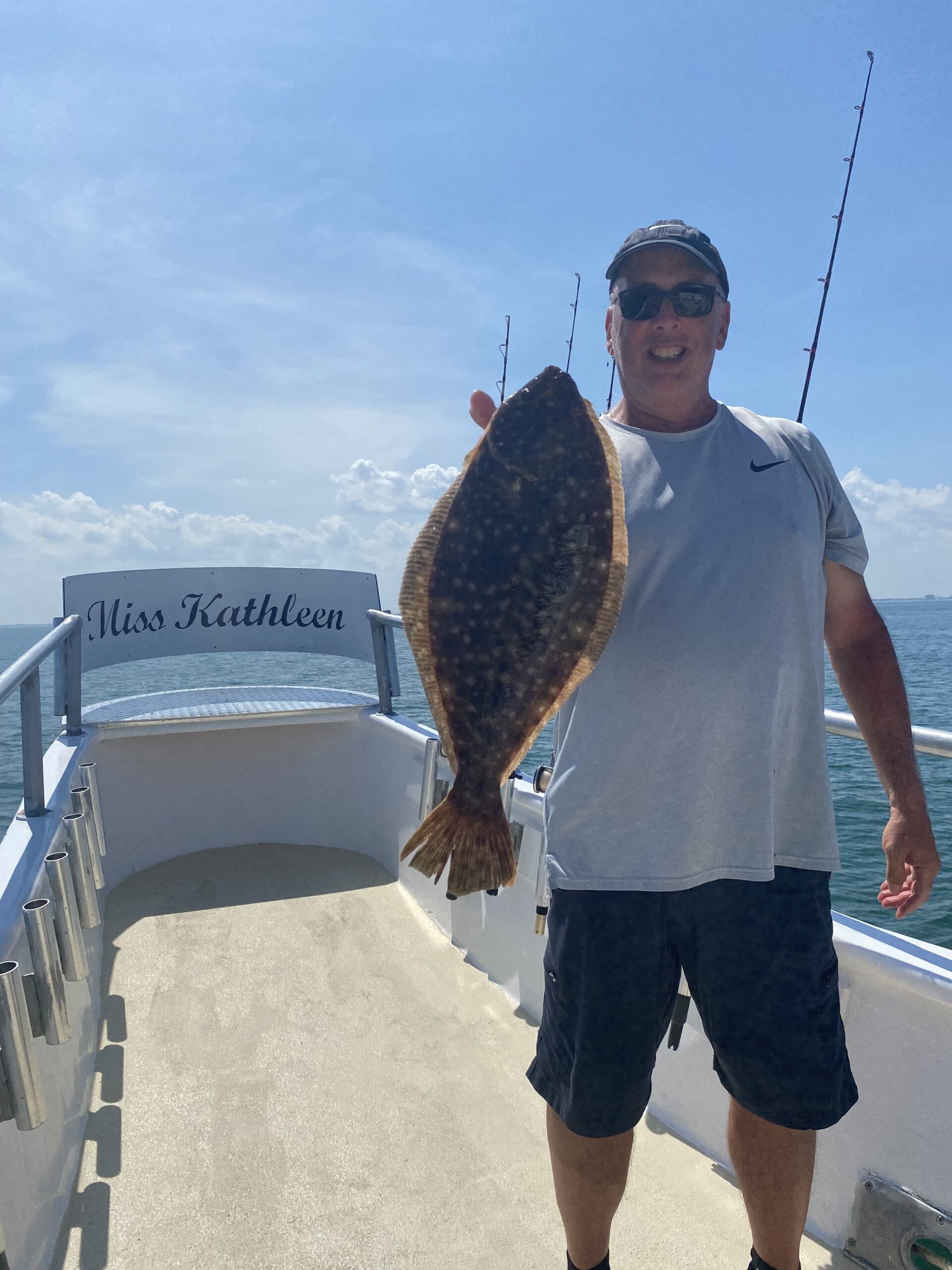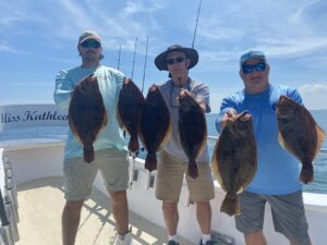 Stephen Ewing, Tom Simmons and Al Schilling had some nice keeper flounder, and Steve Robinson had a 22″ keeper, all while fishing on board the Miss Kathleen out of Bahia Marina.