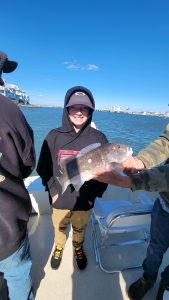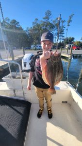 This young angler had a great time on the Lucky Break with Captain Jason Mumford. A keeper tautog and a nice flounder will make any angler happy.