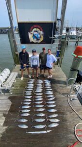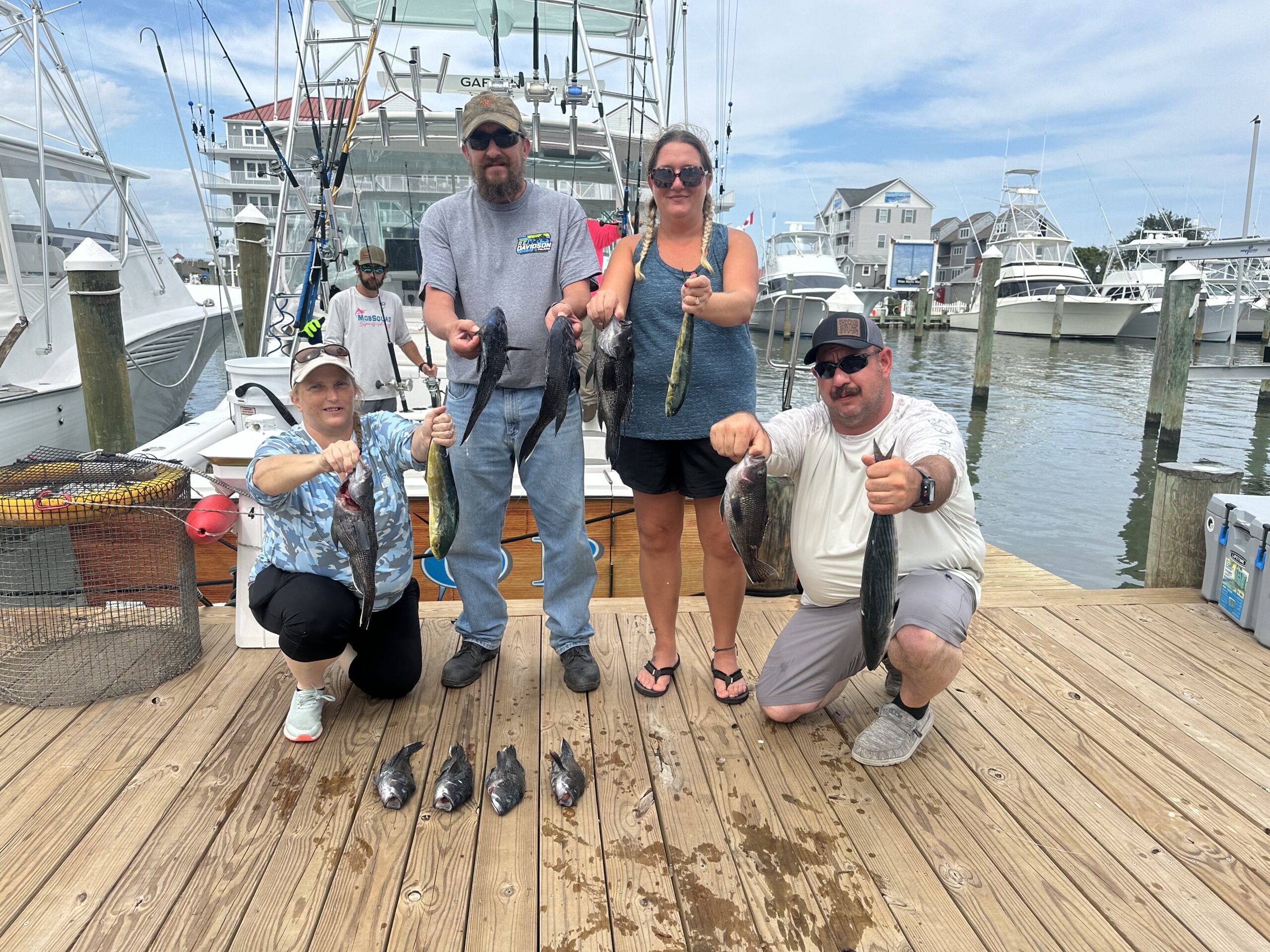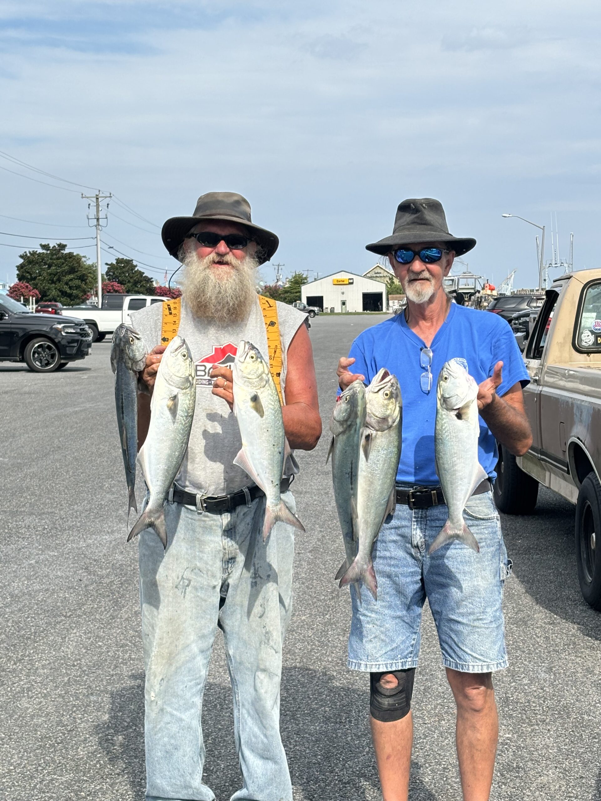 Big Bird Cropper was able to get Neighbor Dave out today and they had a great time Roy Rigging. The guys had a double limit of bluefish, some rockfish action and some throwback flounder.