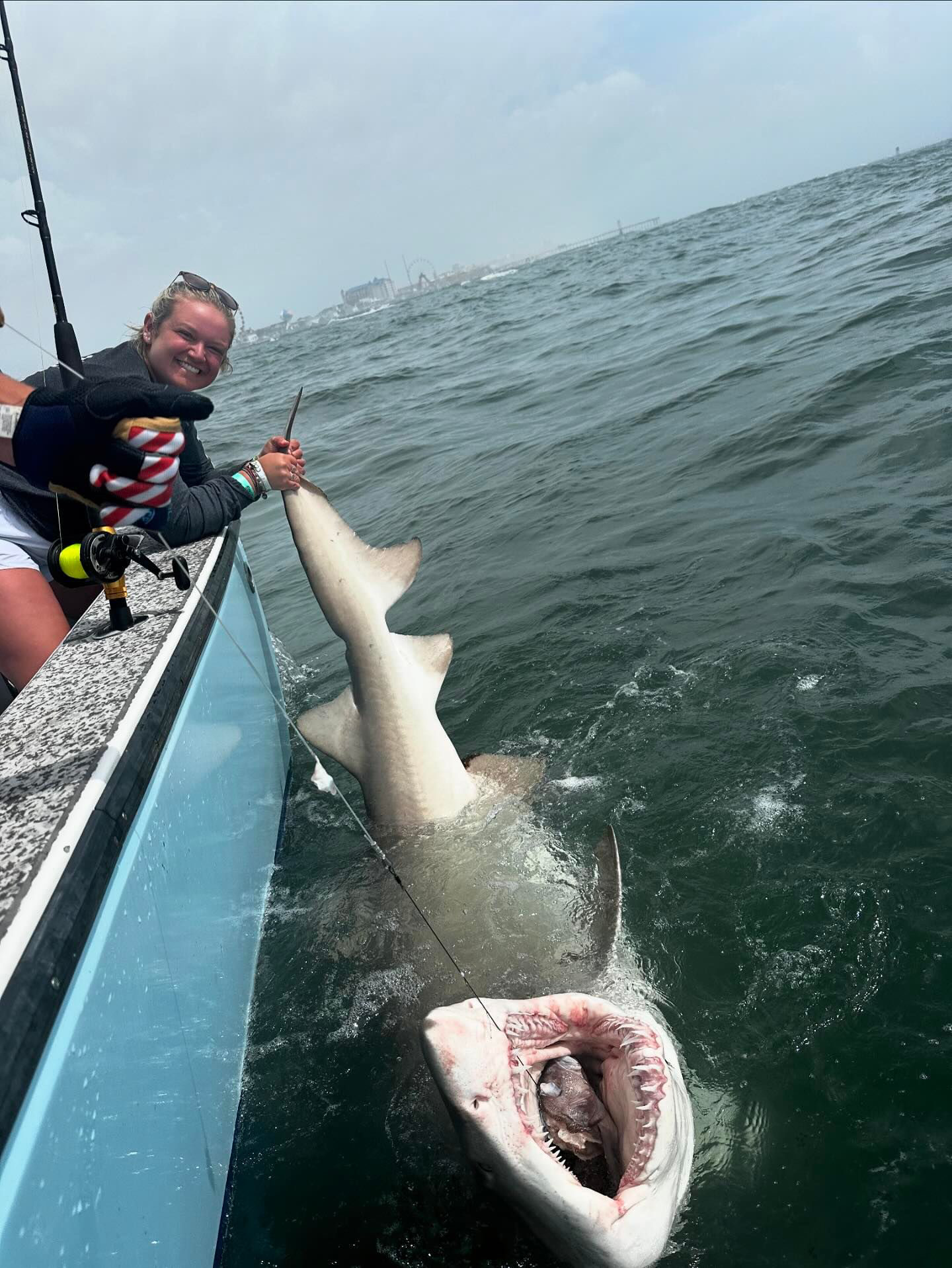 Anglers fishing with Captain Chase Eberle on Chasin’ Tides Charters have had success both inshore trolling and inshore shark fishing with some big sand tigers being caught and released.