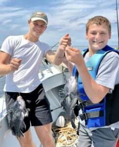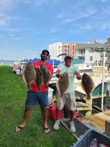 Mike and Mario Marisa had a nice day on the south jetty today putting five keeper flounder in the boat up to 20″ on flounder belly and Gulp.