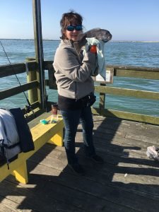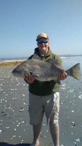 The Oceanic Pier in downtown Ocean City is starting to see a variety of different species come over the rail now. Bear submitted this photo of a lucky angler landed a 17 1/2″ keeper tog on the south east end of the pier.