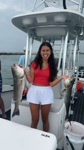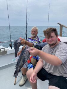 Captain Chase Eberle of Chasin’ Tides Charters has had some good fishing lately with tilefish and sea bass from the ocean and striped bass and bluefish from inside the OC inlet.