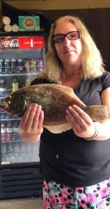 Bear down at the Oceanic Pier in downtown Ocean City saw at least one keeper flounder today too when Michele from Littlestown, PA landed this 16 1/2″ keeper on a 5″ Gulp swimming mullet.