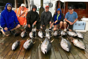 Captain Mark Hoos of the MARLI stacked and packed the box with another great day of tuna fishing with mates Michael Butler and Chase Neiderer.
