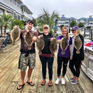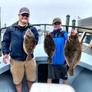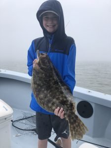 Flounder fishing in the back bays has been pretty good the past few days despite the rain. Captain John Prather of Ocean City Guide Service knows where to find the fish and today he did it again. This morning it was five beautiful fish from the south bay and this afternoon it was a couple more keepers with a stud caught by young Clayton Christy of Texas. Clayton’s big flattie was 24″ long and weighed in at a nice 4.9 pounds.