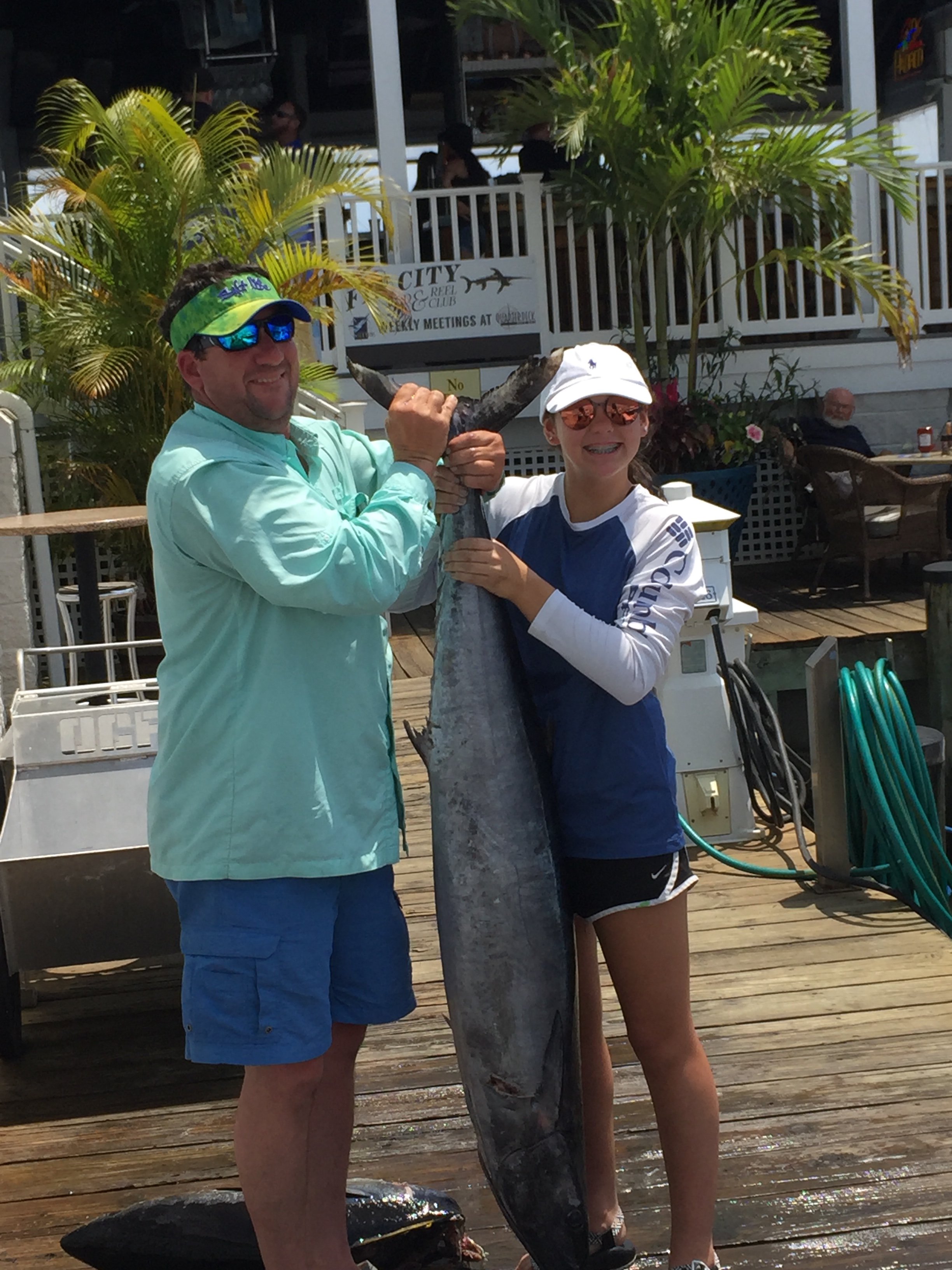 Captain Drew Zerbe of the Tortuga bay fishing party boat put this young lady on this evening’s pool winner and a handful of cash.