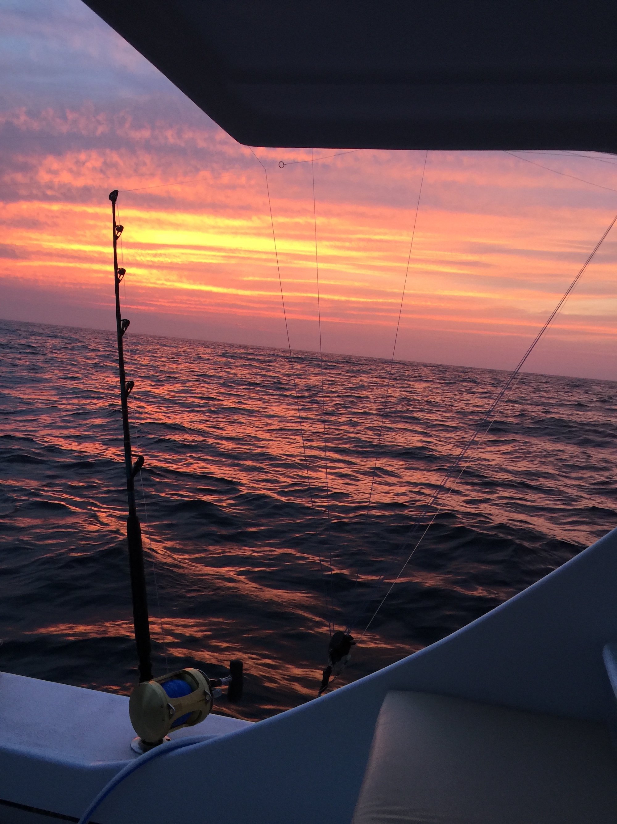 The report from offshore was of some tough fishing with not a whole lot of tuna caught in the canyons and on the lumps. It’s flat calm again and I’d bet money that has something to do with it. Captain Jeremy Blunt on the Wrecker was overnight last night so he had the opportunity to fish times the other guys didn’t. Captain Jeremy rewarded his crew with eight healthy yellowfin tuna, three mahi and a really nice 56 pound wahoo. The crew also released a BIG dusky and were on the water for a beautiful sunrise.
