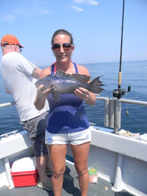 Captain Monty Hawkins of the Morning Star party boat sent this photo in of Sarah Ferguson of Wilmington who had a fine sea bass on today’s trip.