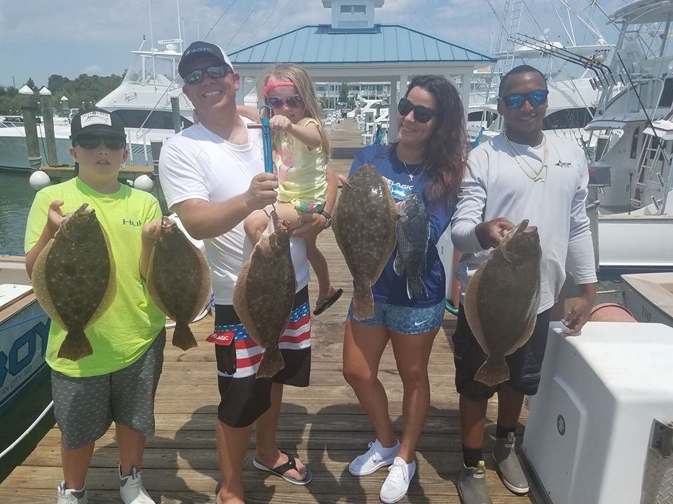 Captain Luke Blume of the C Boys had his crew in the ocean today, but it wasn’t his usual offshore fishing. Today Captain Luke put Paul Crampton III, Paul’s daughter Harper, Christina Alo, mate Jon Henry and mate Joshua Blume on some nice flounder fishing at the Old Grounds. The crew had five keeper flounder up to 21″ and one keeper sea bass on Gulp baits.