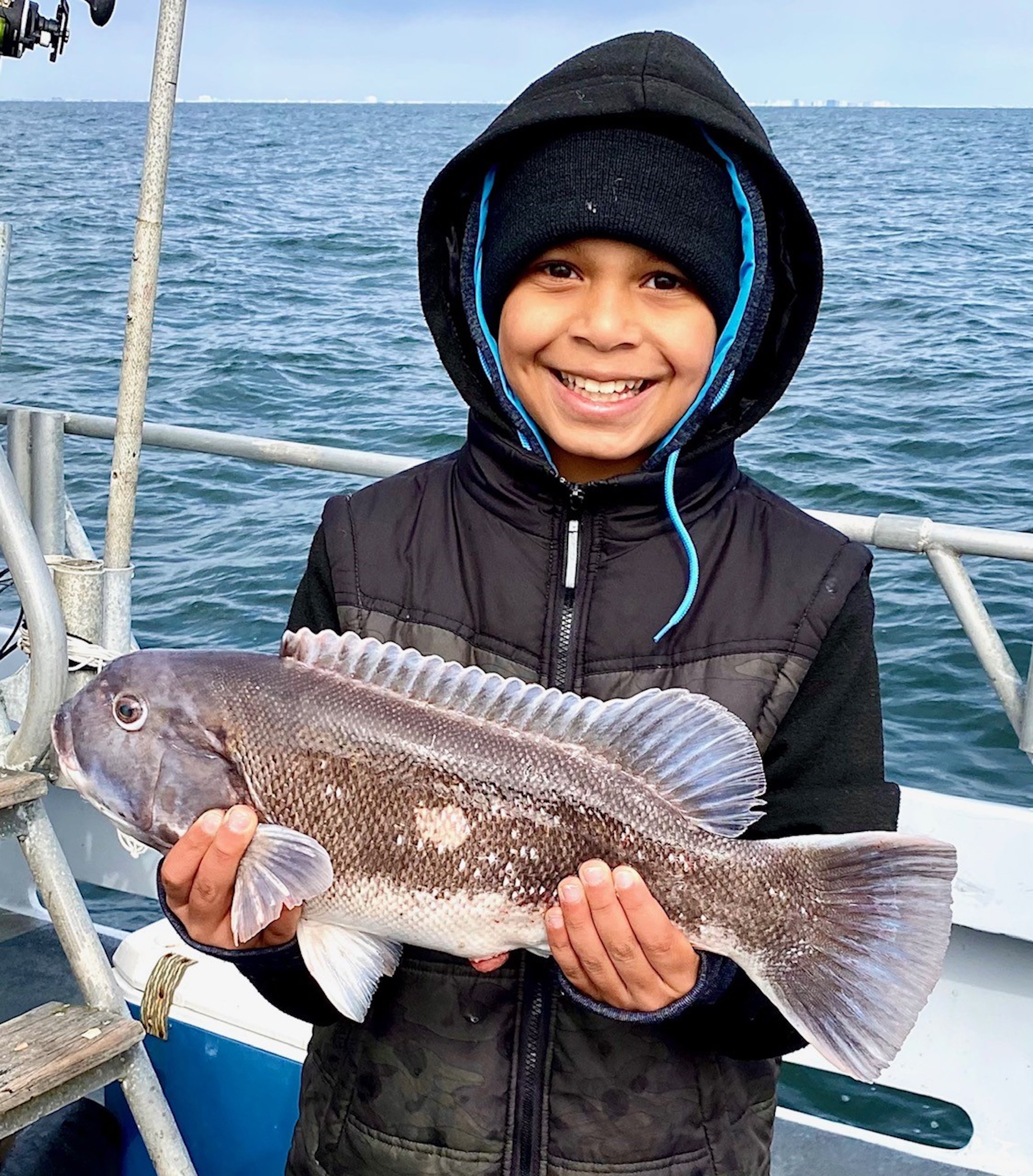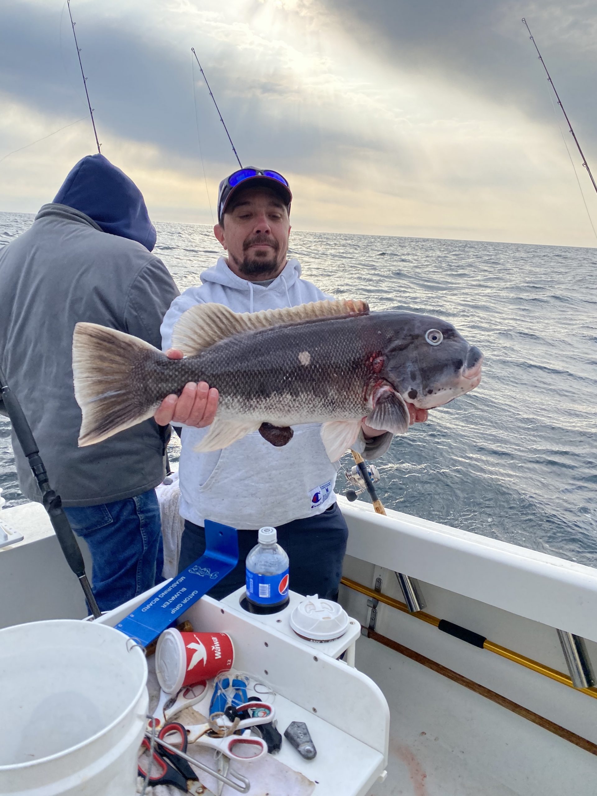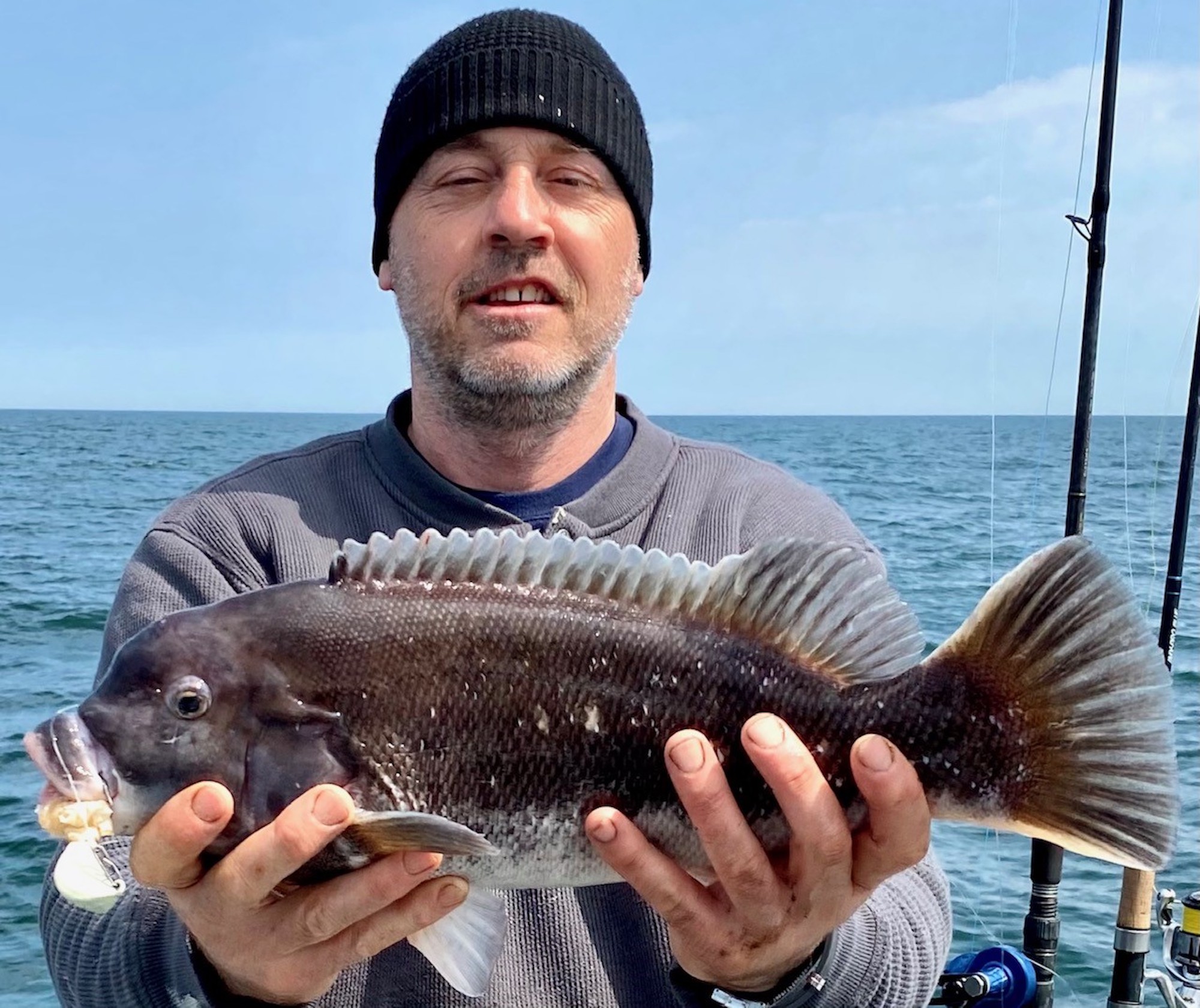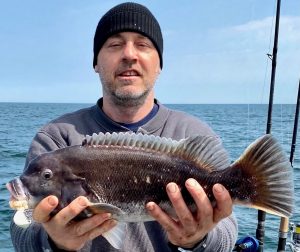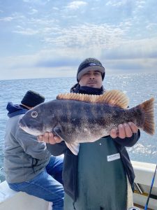 The weather was very nice in and around Ocean City today with warmer than expected temps, sunny skies and light winds so it was a great day to be outside whatever you were doing. Lots of folks were visiting with family and friends, but two of our Fish in OC partners were out on the water catching their anglers some nice tautog.