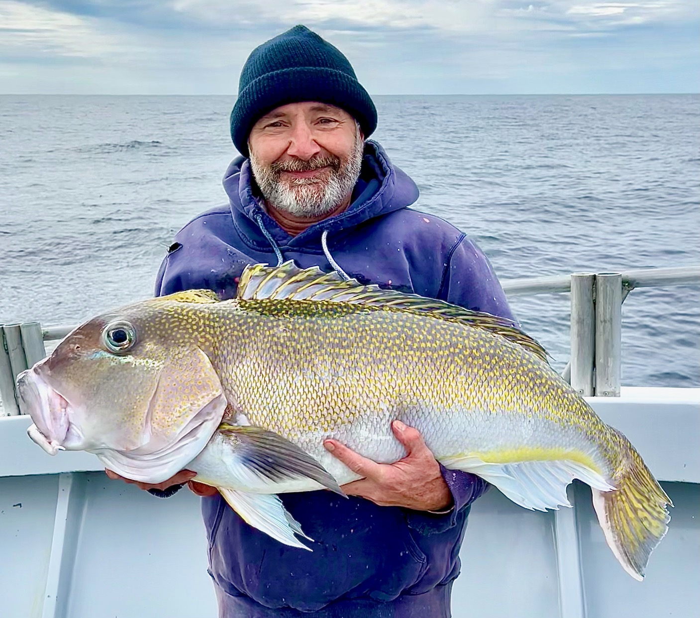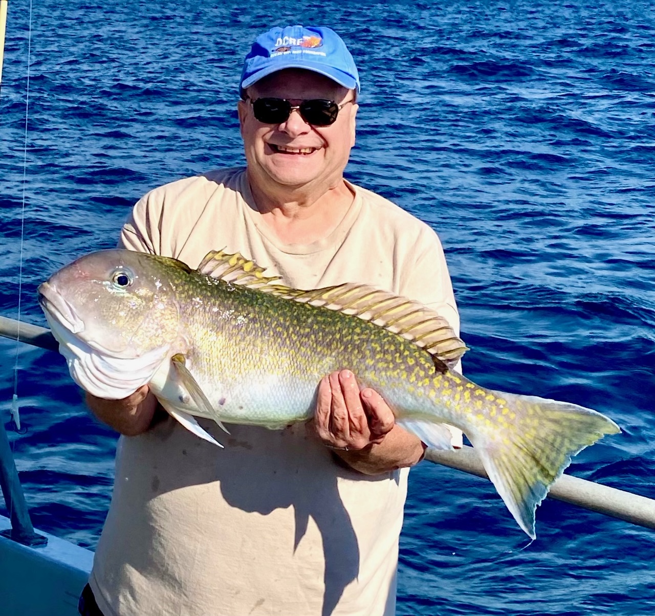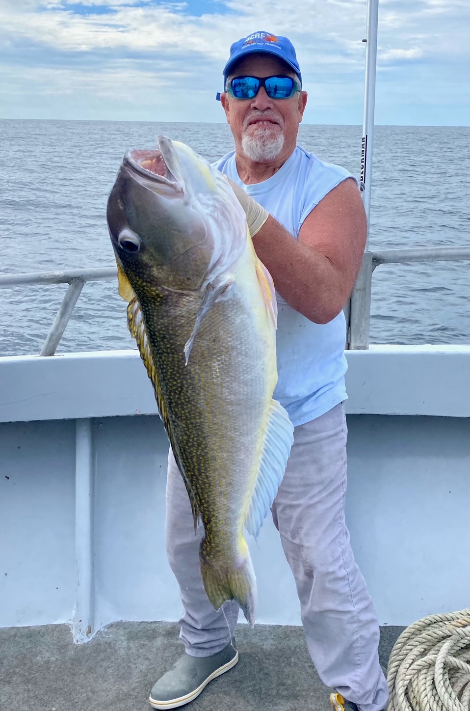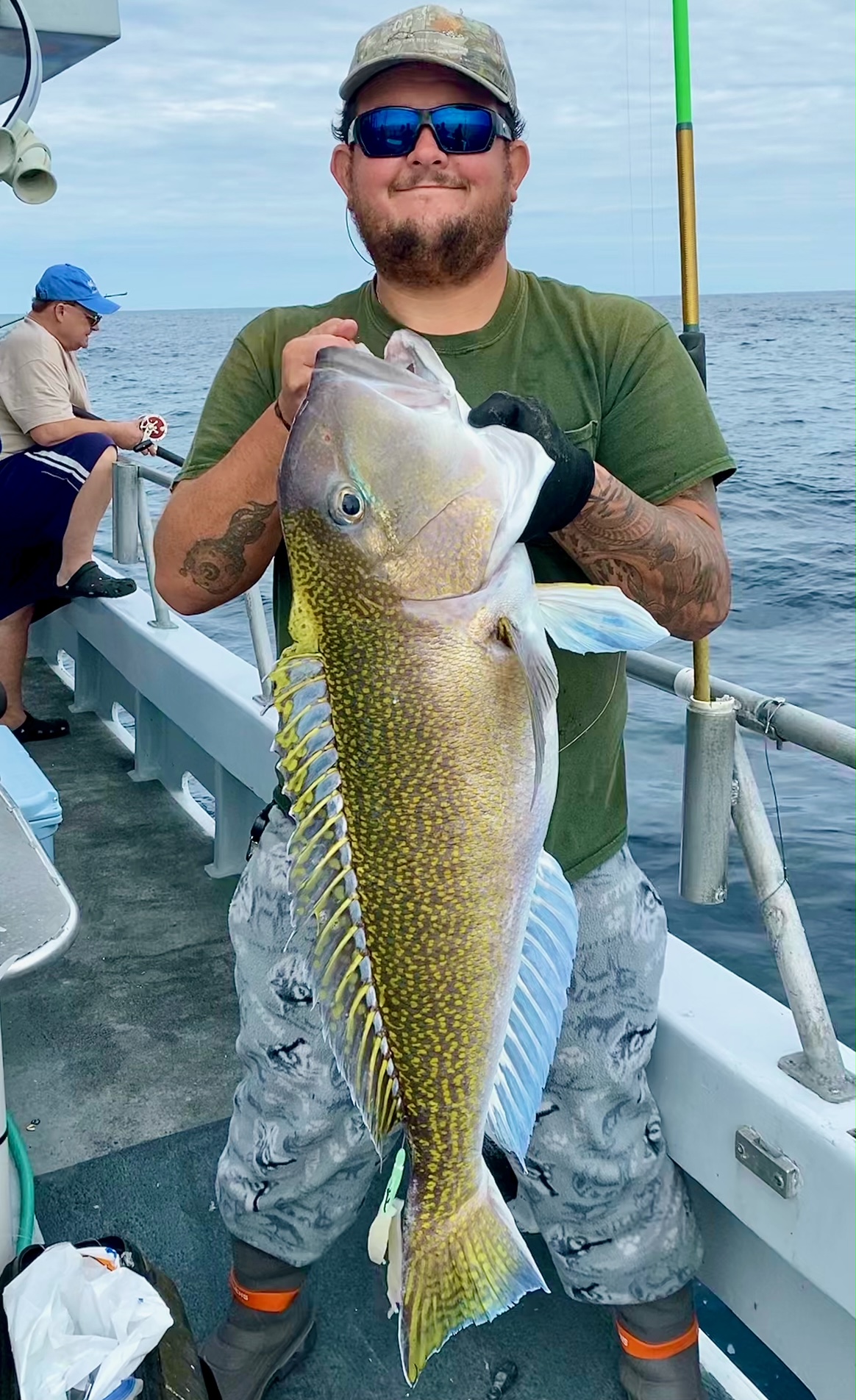 Local healer and angler extraordinaire, Dr C, set the pace with a 51 lb golden over the rail first. Jigmaster Tom was hot on his heels with a 50 pounder! (boat weight at sea – just big tiles!)