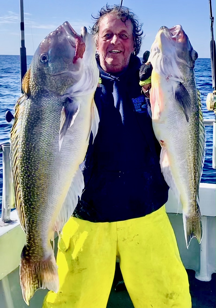 On duty chef and slayer of the giant double, I doubt if I could have held both Rich’s fish up for a pic.. Bernie struggled for a bit (about time!) but then came on strong.