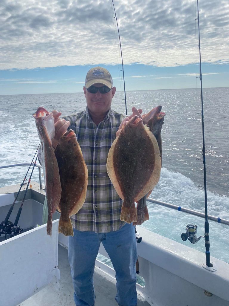 Captain Chris Mizurak of the Angler didn’t send a text about flounder today, but he knows he doesn’t have to. I hit his Facebook page and found that flounder fishing was reel good on board with several limits of four fish per person over 16.5″. There were also some nice sea bass and some triggerfish in the mix.