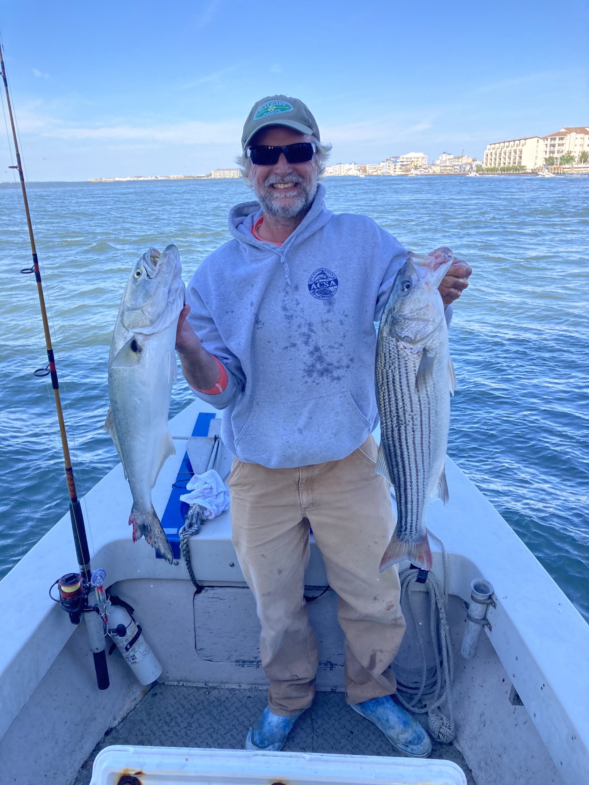 Big Bird Cropper and Shawn Flaherty had a fun day fishing the route 50 bridge today with Stretch lures and Roy Rigs. The guys had some big bluefish and two keeper sized rockfish.