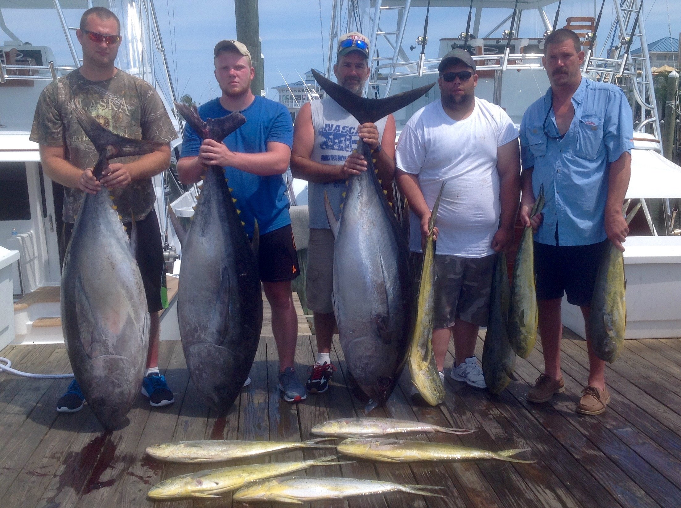 The Marli with Captain Mark Hoos returned from a 30 hour overnight trip yesterday and had something awesome to report. This group of Pennsylvania anglers had a great night in the Washington Canyon on the charter boat MARLI with Captain Mark Hoos and Mate Mark Stephens. They went 3 out of five on Bigeye Tunas and caught 8 gaffer Dolphins. Plenty of tuna for the freezer….