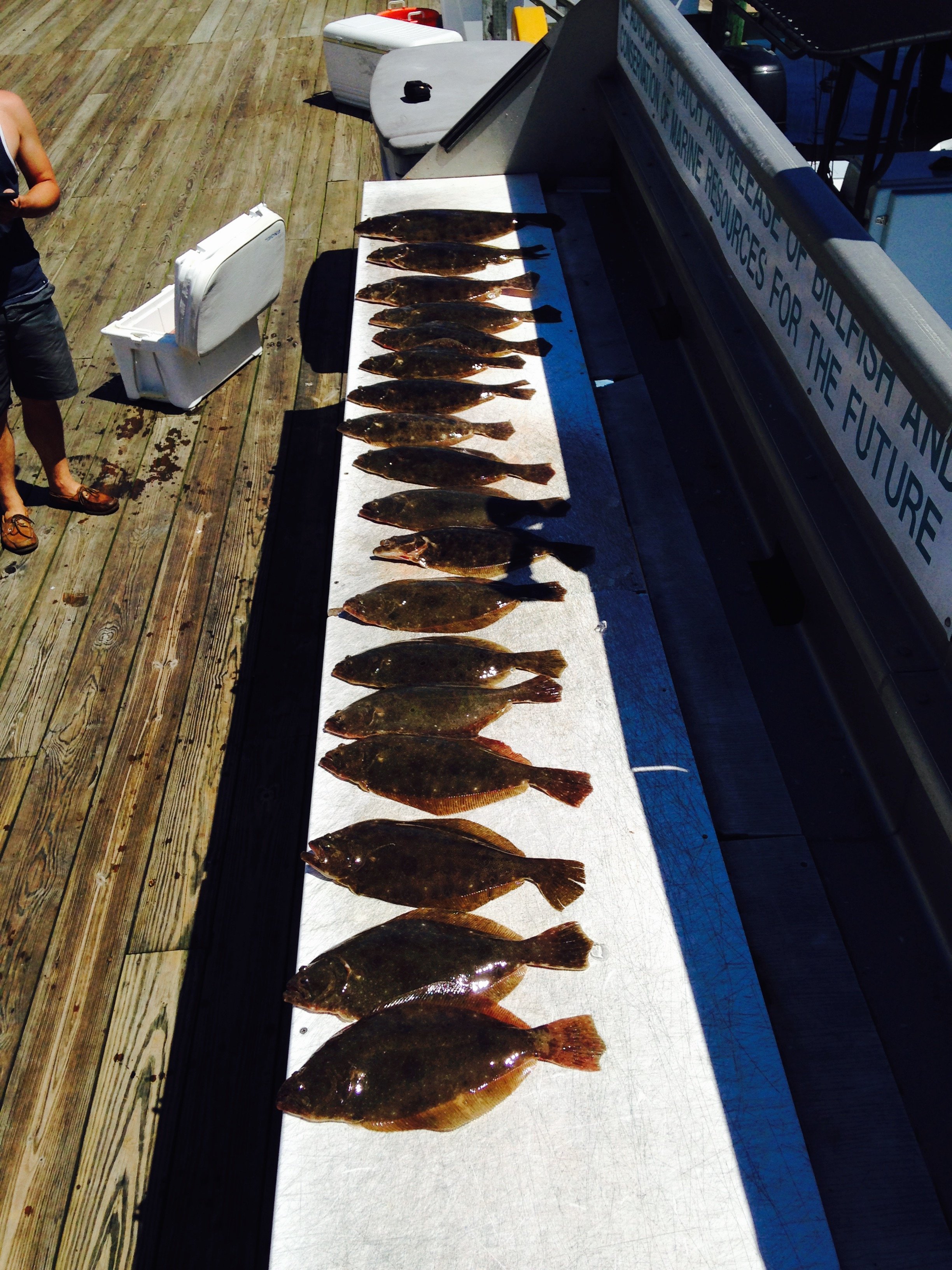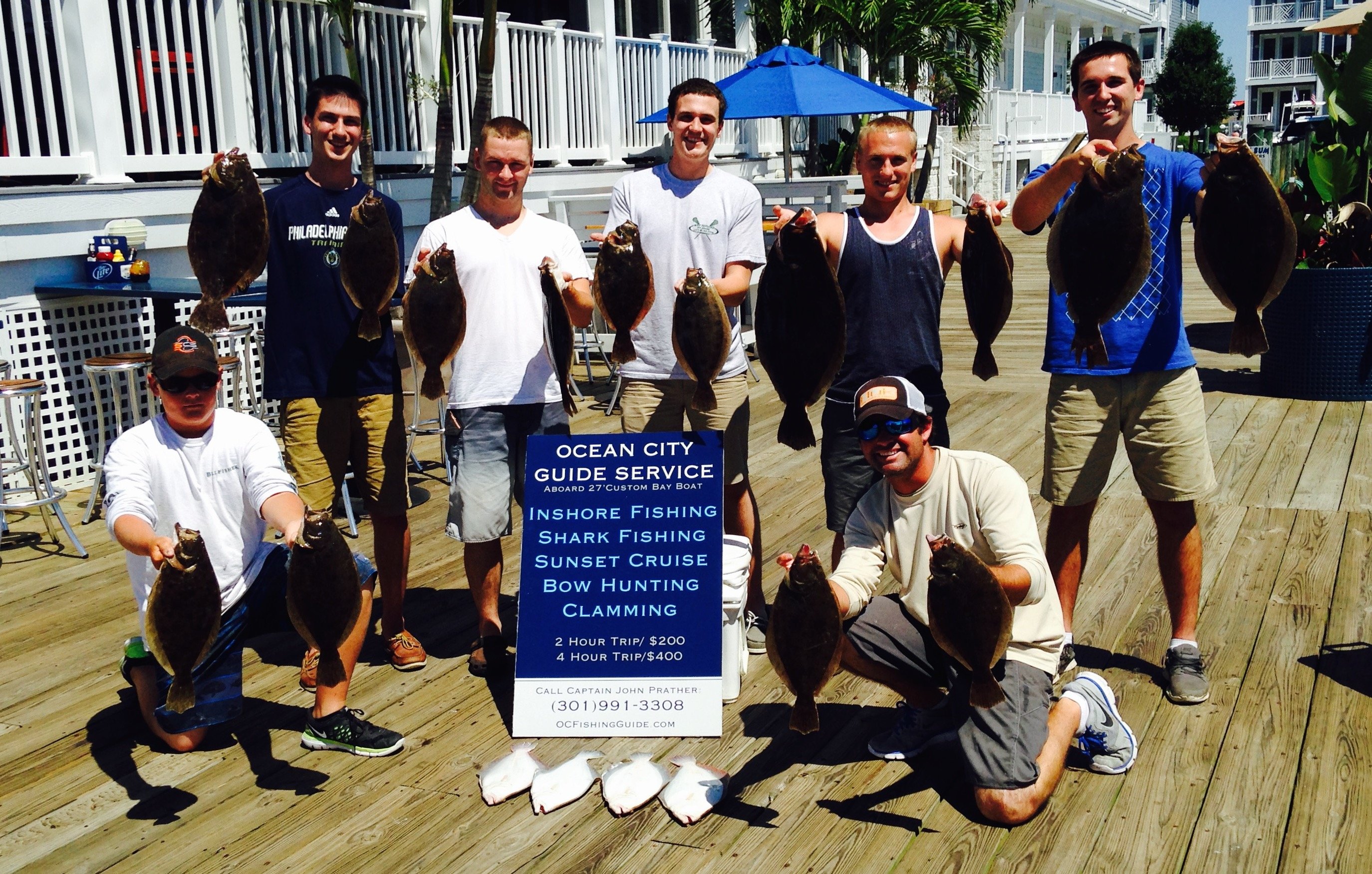 I’ll start tonight’s report with some inshore flounder action that was just stellar. Captain John Prather on Ocean City Guide Service ventured outside the inlet to an ocean wreck and well……wrecked the flounder! He returned to the dock with 18 keepers including a beautiful 27″, 7.3 pounder! All of the fish were caught on strips of bluefish.