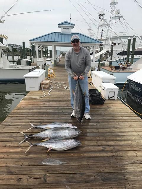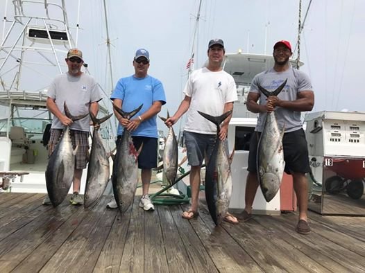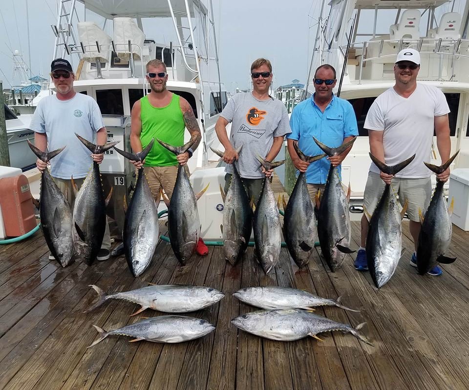 The crew of C Boys with Captain Luke Blume and mate Jon Henry was all over the yellowfin today. Captain Luke put Vernon Morsburger and his crew from Baltimore, MD on 14 yellowfin up to 60 pounds.