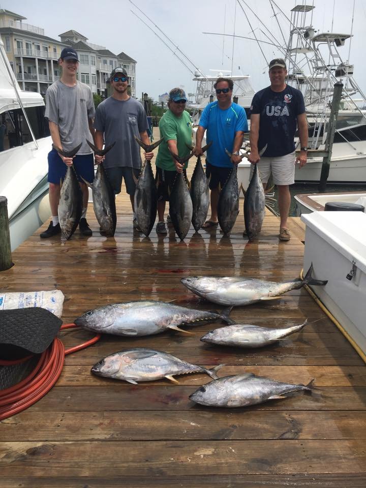 The Reel Direct with Captain Brandon Speilman not only put his crew on 12 nice yellowfin tuna, he did it by 9:30 this morning and was back to the dock by 12:15!