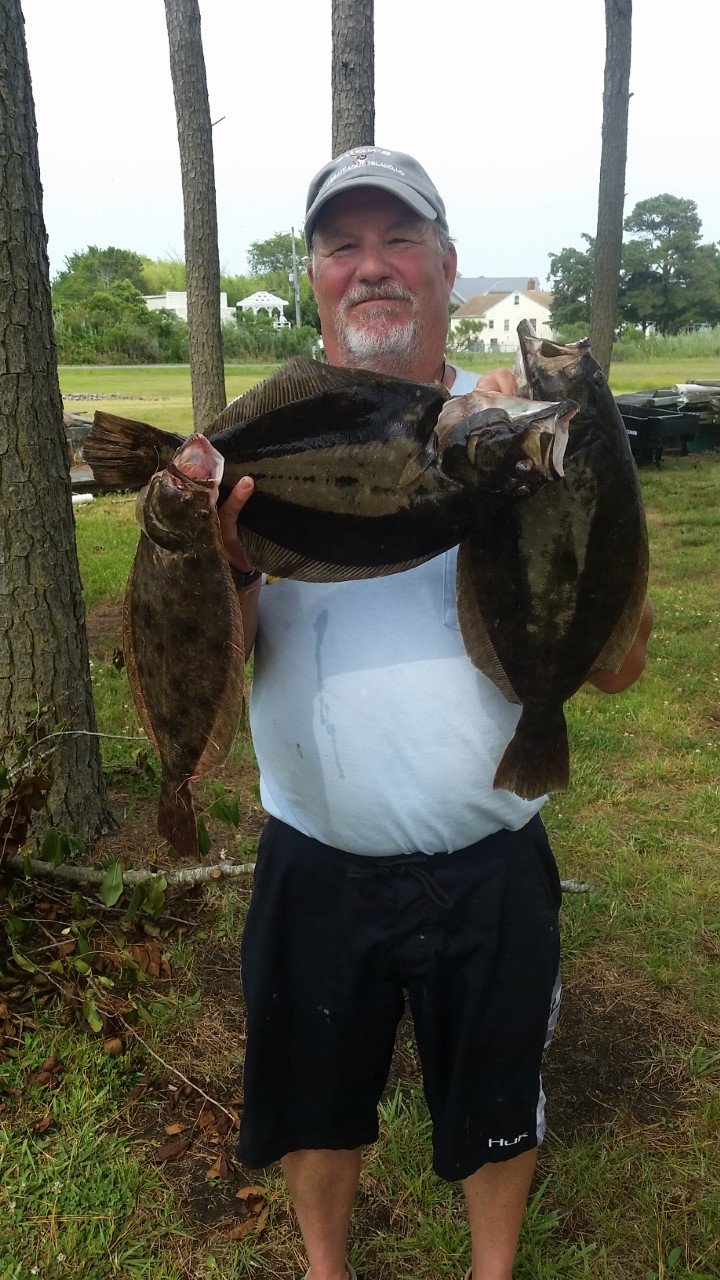 Captain Brad McCabe of Baytime Charters used his day off to do a little flounder fishing on his own today. Captain Brad fished the west channel and near the Thorofare and ended up not having enough hands for his 18″, 19″ and 19.5″ keepers.