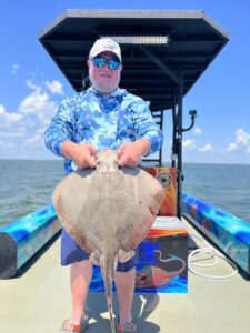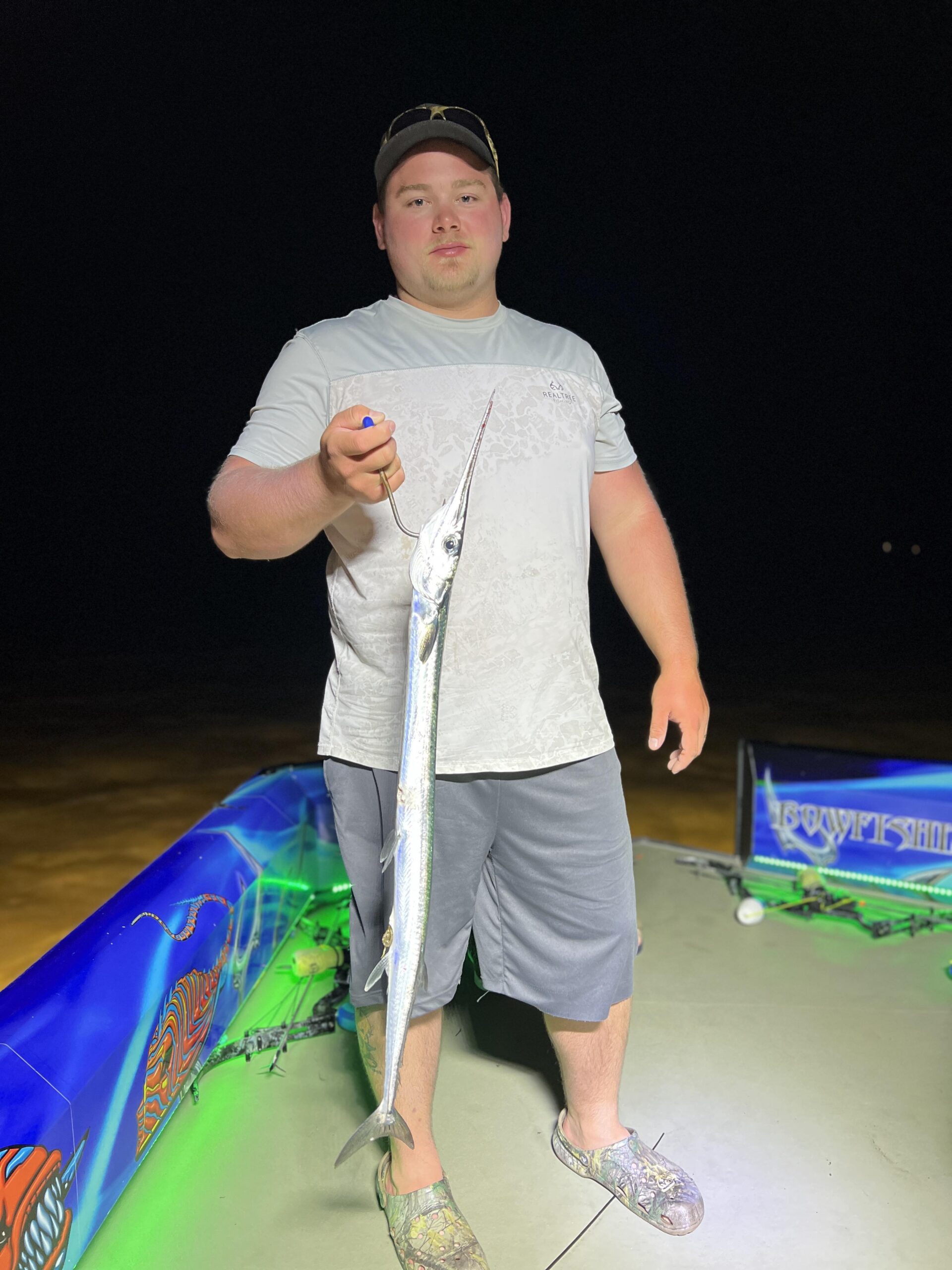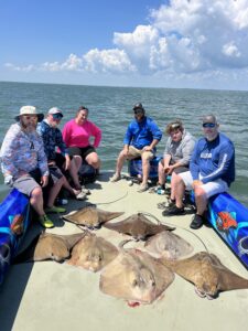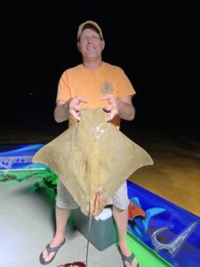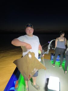 Captain Marc Spagnola of Dusk to Dawn Bowfishing doesn’t sleep much this time of year, and if you’re a stingray or a hound fish you don’t either.
