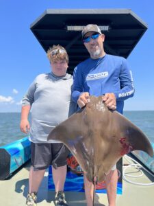 Captain Chase Eberle of Chasin’ Tides has been showing families a good time with plenty of keeper flounder action and some catch and release shark fishing.