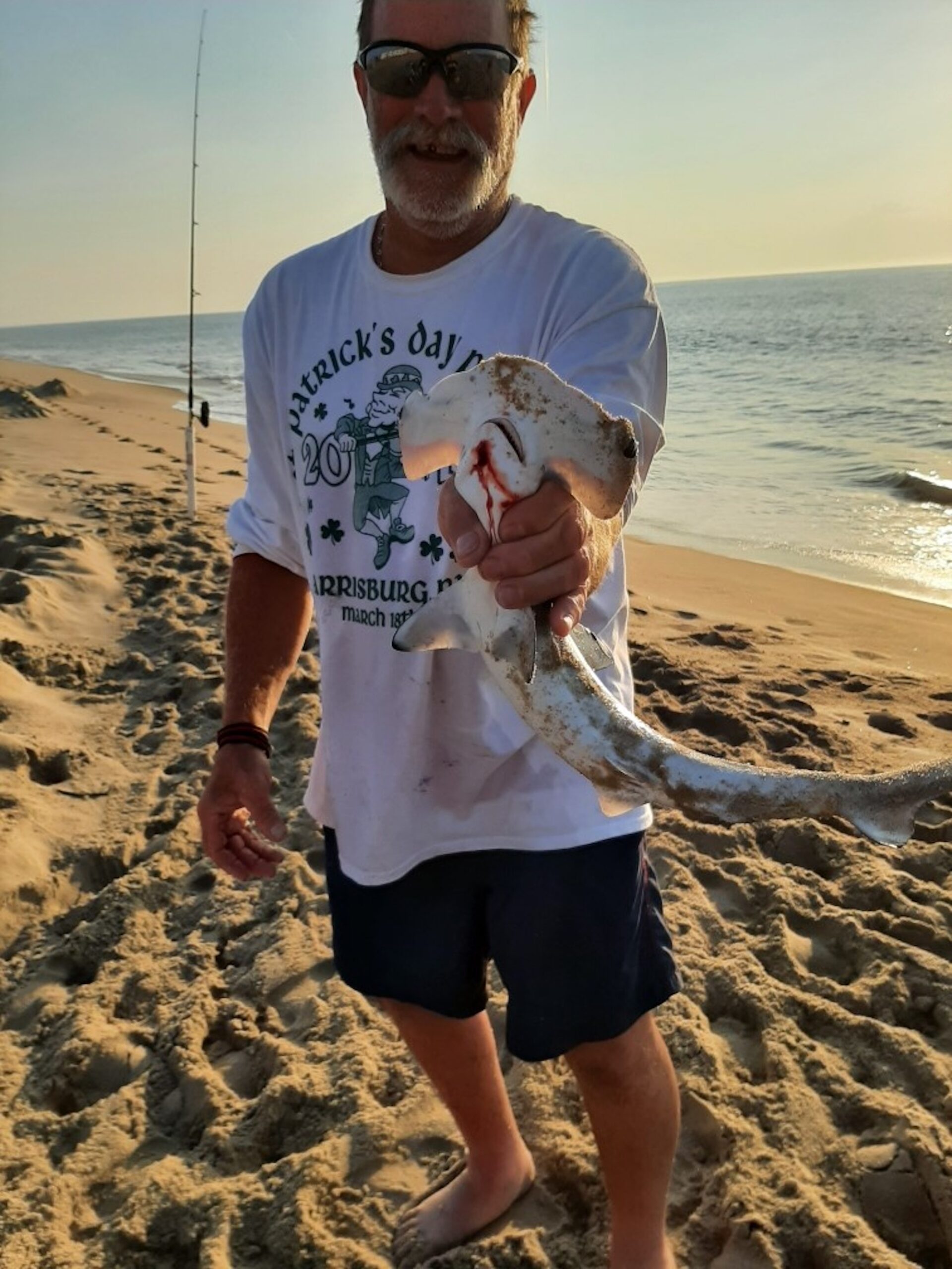 Uncle Wayne was fishing the surf in Ocean City this morning when he caught and released a juvenile hammerhead shark.