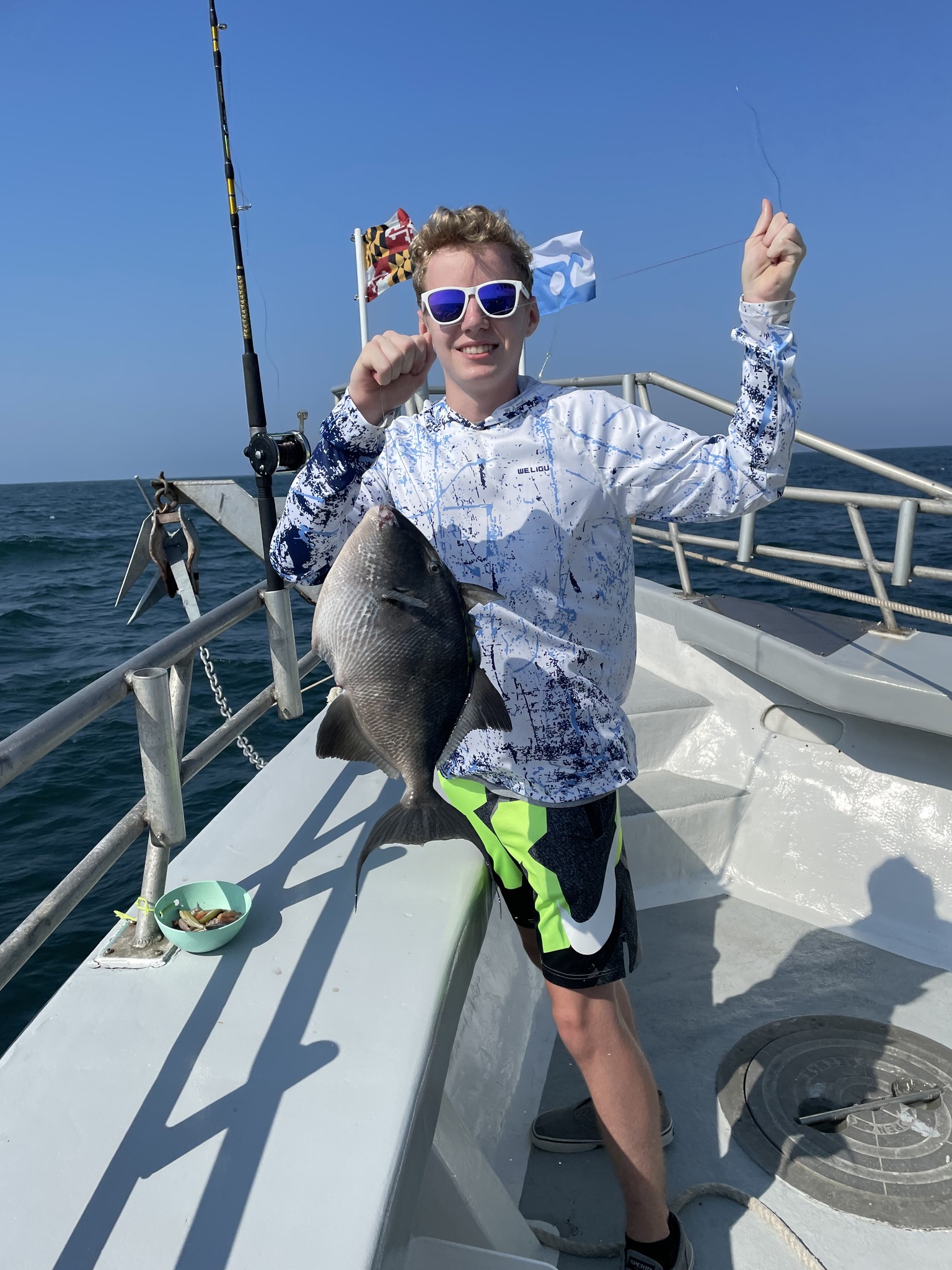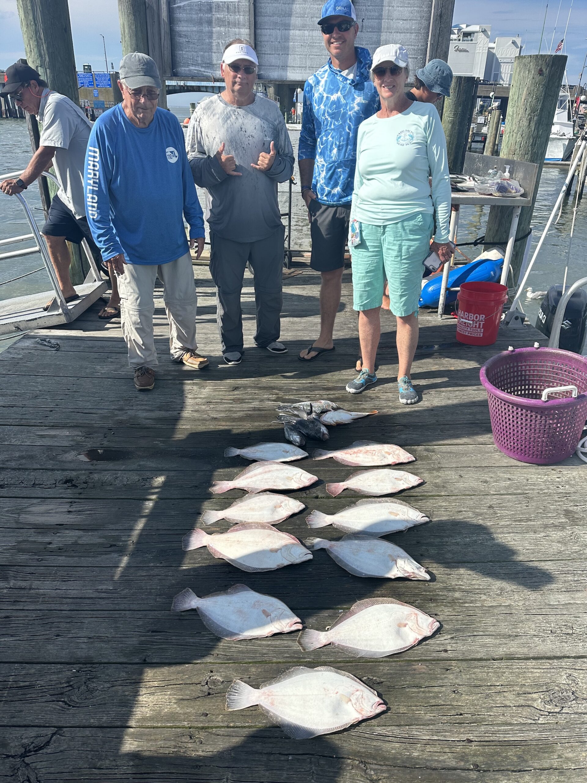 Most of the offshore fleet was tied to the dock today changing up lines and rigging baits for the OC Tuna Tournament, but the ocean going bottom fishing fleet was out trying to beat the wind. Captain Chris Mizurak of the Angler reported a fussy bite today, but did put some good fish in the boat and beat feet before the wind blew.