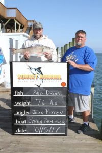 The crew of Stern Reminder weighed a nice 7.6 pound red drum that they caught today that was good for 2nd place in the open category.