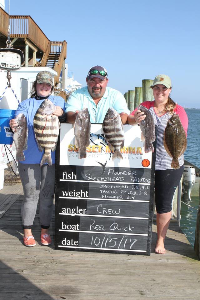 We thought we might have a busy day at the scales being that participants were able to fish overnight into today and we were right. Scales closed at 7 PM last night so anyone that caught fish last night or today before lines out at 3 PM would weigh today from 3 PM until 5 PM. We had a red drum waiting for us at 3 o’clock and it was nonstop until about 4:15. When things slowed down we had weighed a red drum, some big sheepshead, some keeper tautog and a bunch of legal flounder. Here’s who won what.