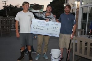 There were a bunch of flounder brought to the scales at Atlantic Tackle today and a lot of them weighed 2.4 pounds. Unfortunately 2.4 pounds wouldn’t end up on the leader board after the crew of Minor Threat weighed their stringer of six keeper flounder. The Minor Threat had an awesome day of flounder fishing and swept the flounder category with fish of 2.8, 3.0 and 4.4 pounds. Minor Threat won a nice check of $970 and a new JPR custom rod for their flounder category sweep.