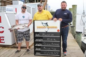 The big money winners in the first annual Ocean City Inshore Classic was the crew of the Miller Time. Miller Time won third place in the open division, but their big dough came from the one and only qualifying rockfish that they weighed during yesterday’s scales action. Miller Time’s first place rockfish and third place open division bluefish earned them a nice payday of $1,927.