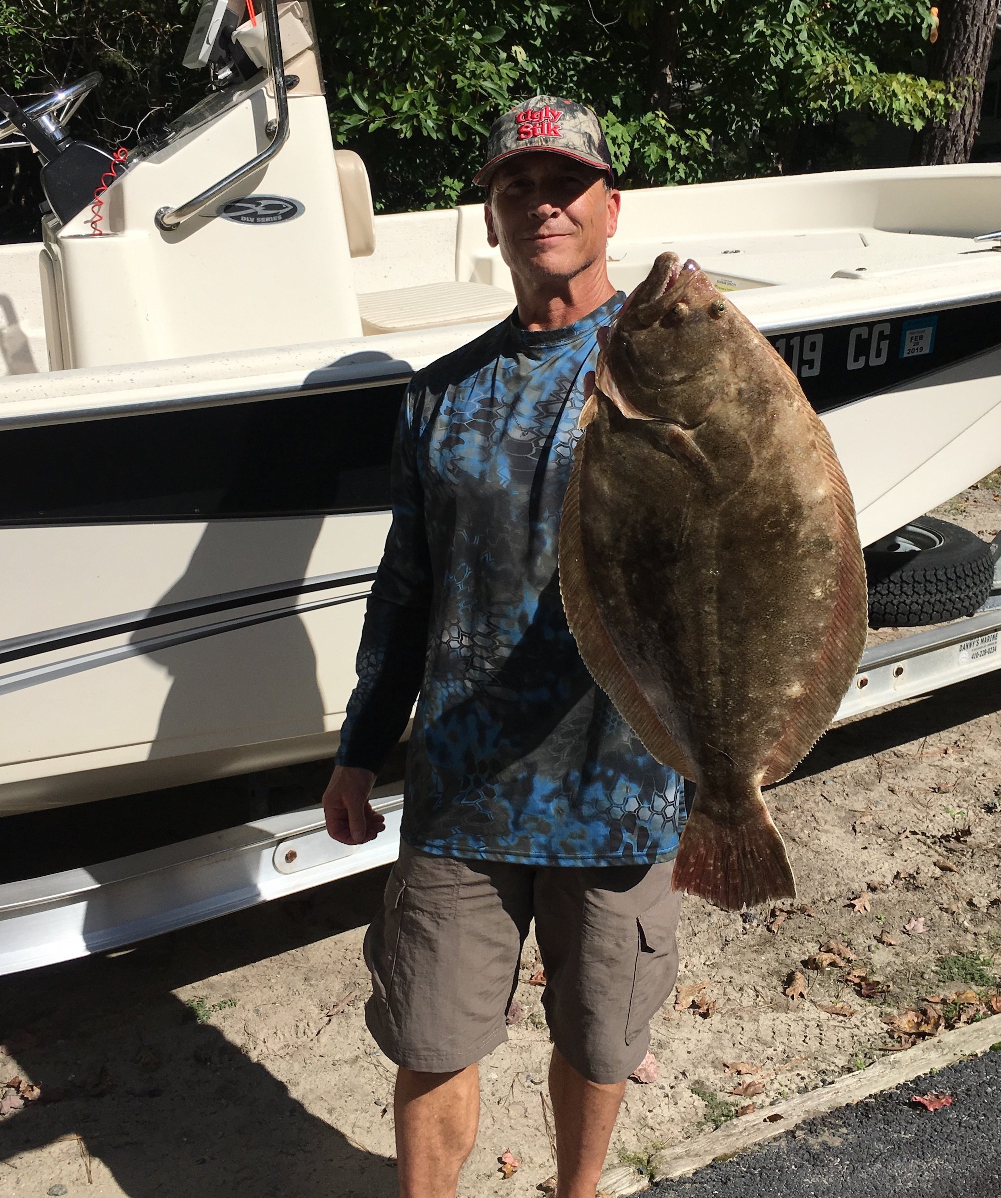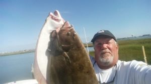 You can’t see all of the fish in this selfie, but Captain Brad McCabe of Bay Time Charters boxed three nice keeper flounder up to 21″ this afternoon.