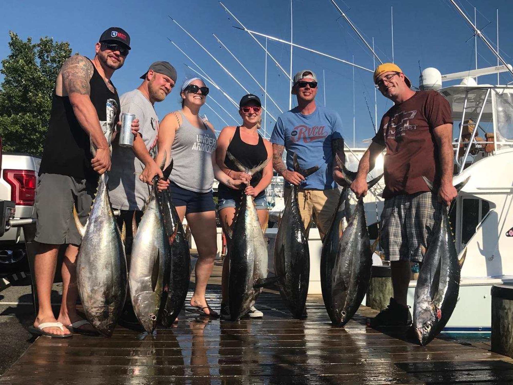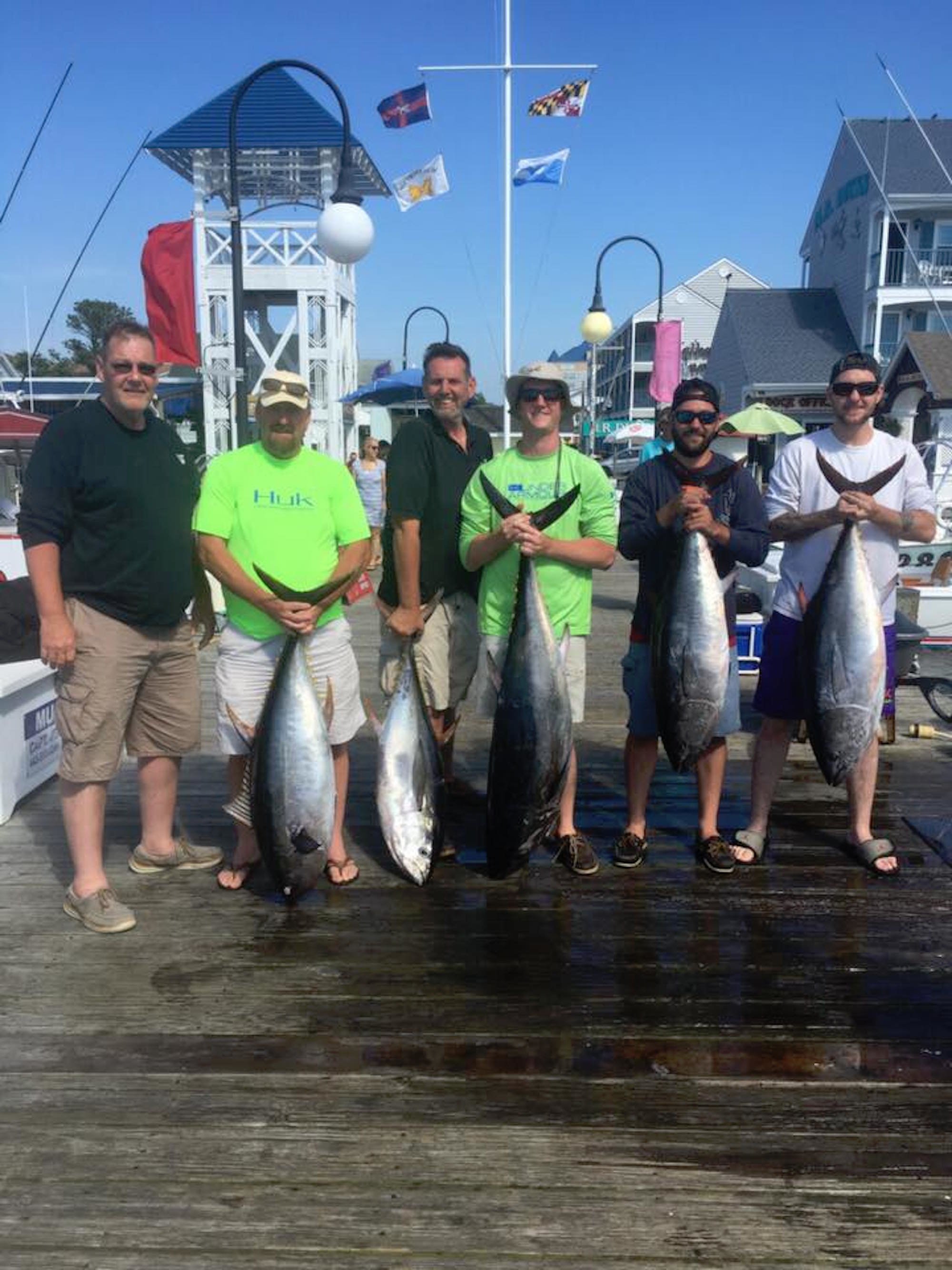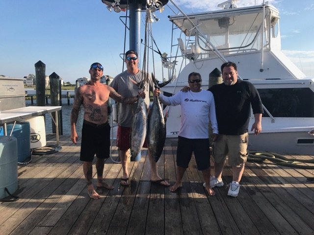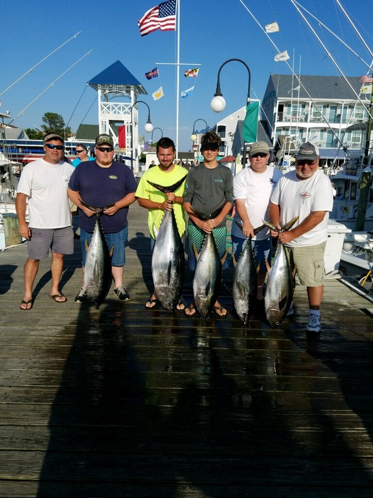 Marty Hall,Evan Thomas, Cory Brooks. Brandon Brooks and Butch Loyd had put some tuna in the box today on the Jade II with Captain Ed Kauffman and mate Brian Hazard.