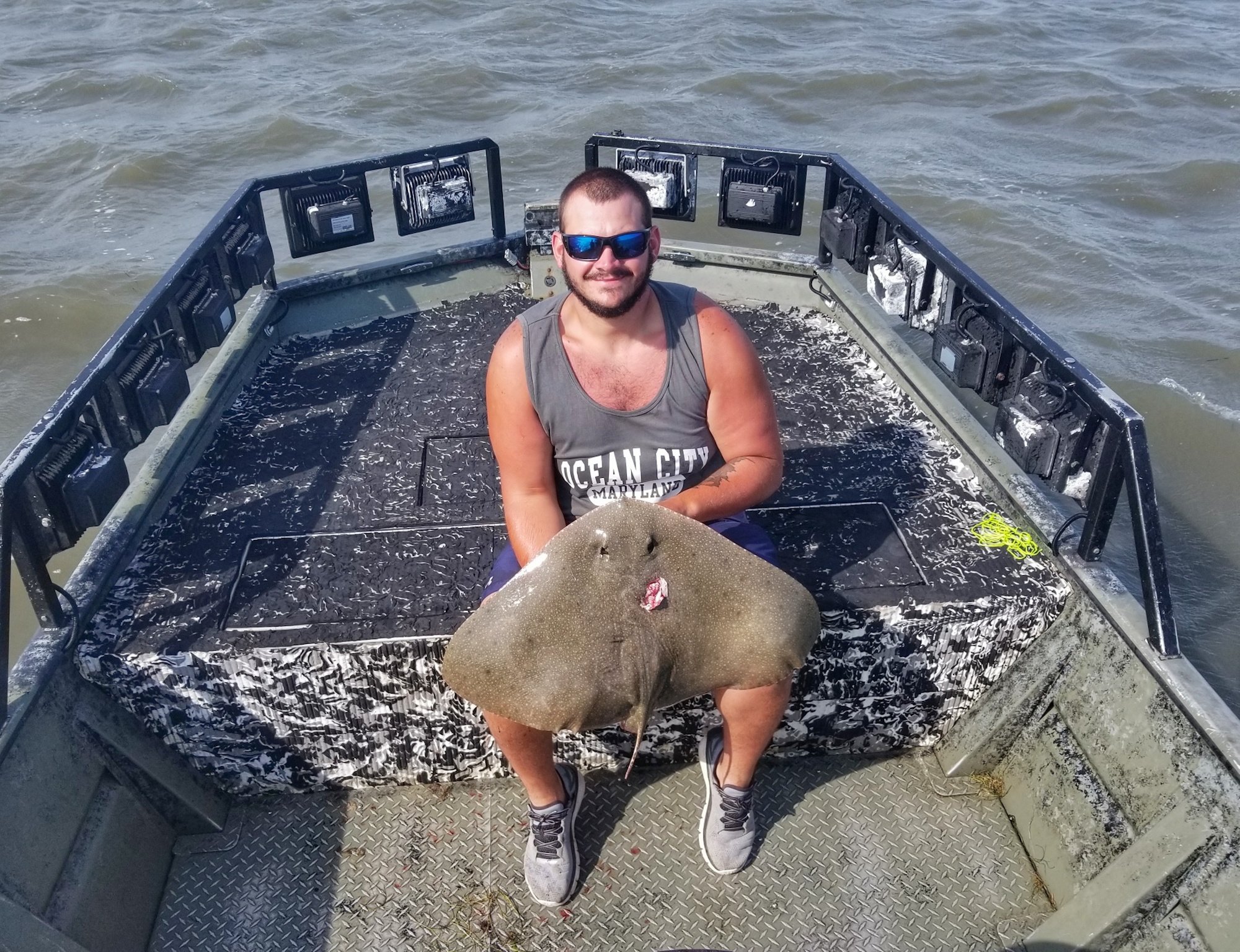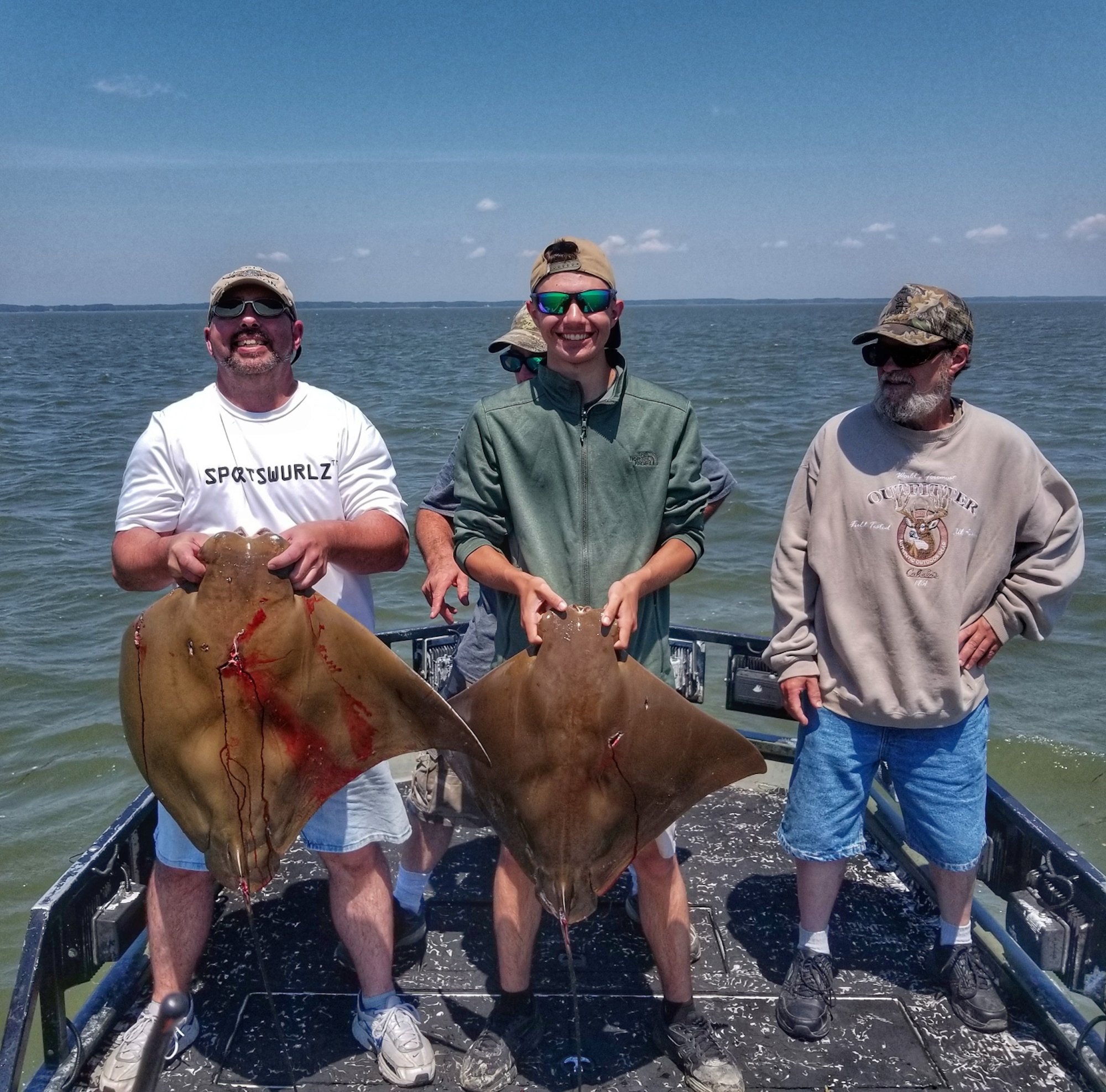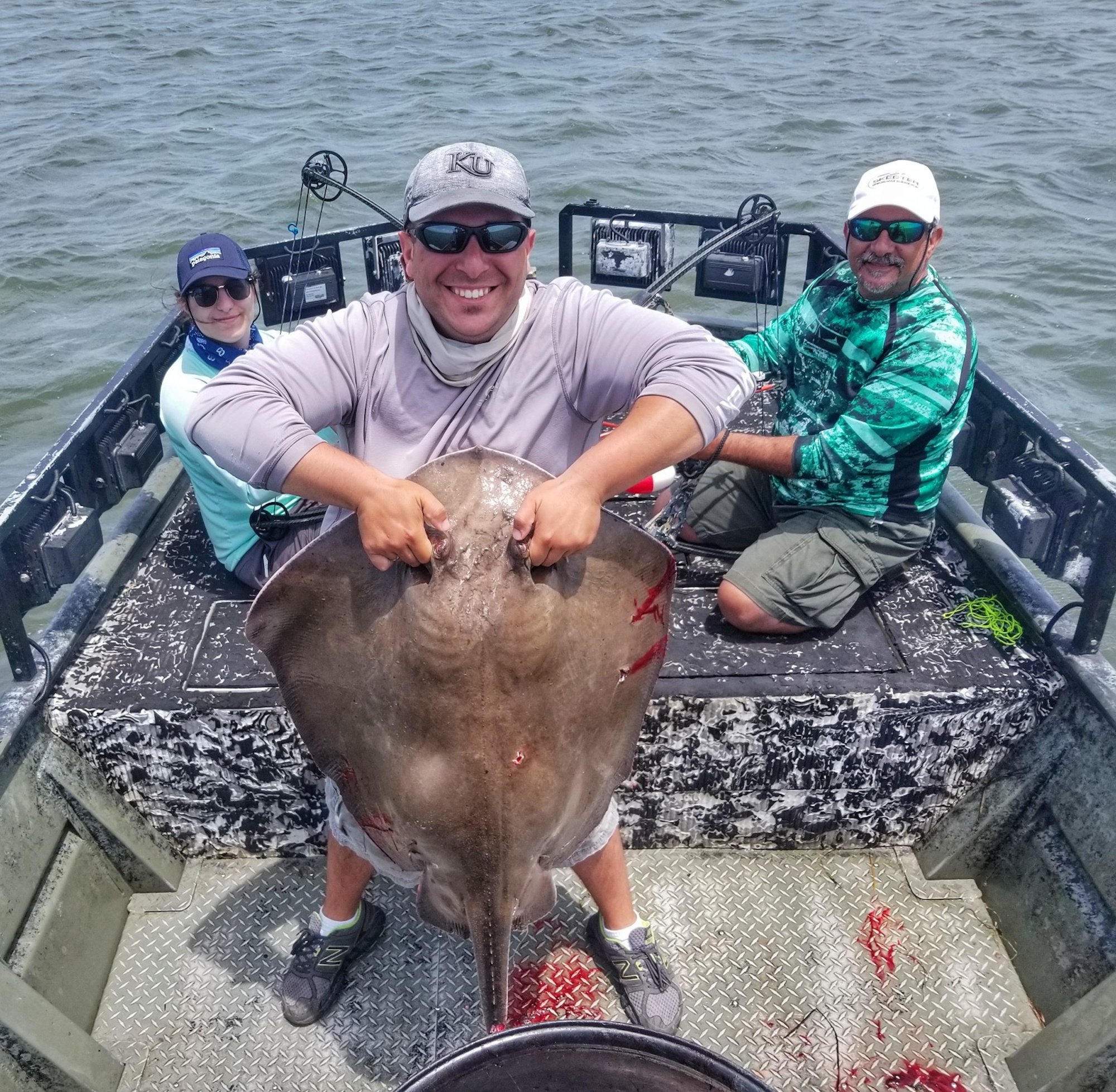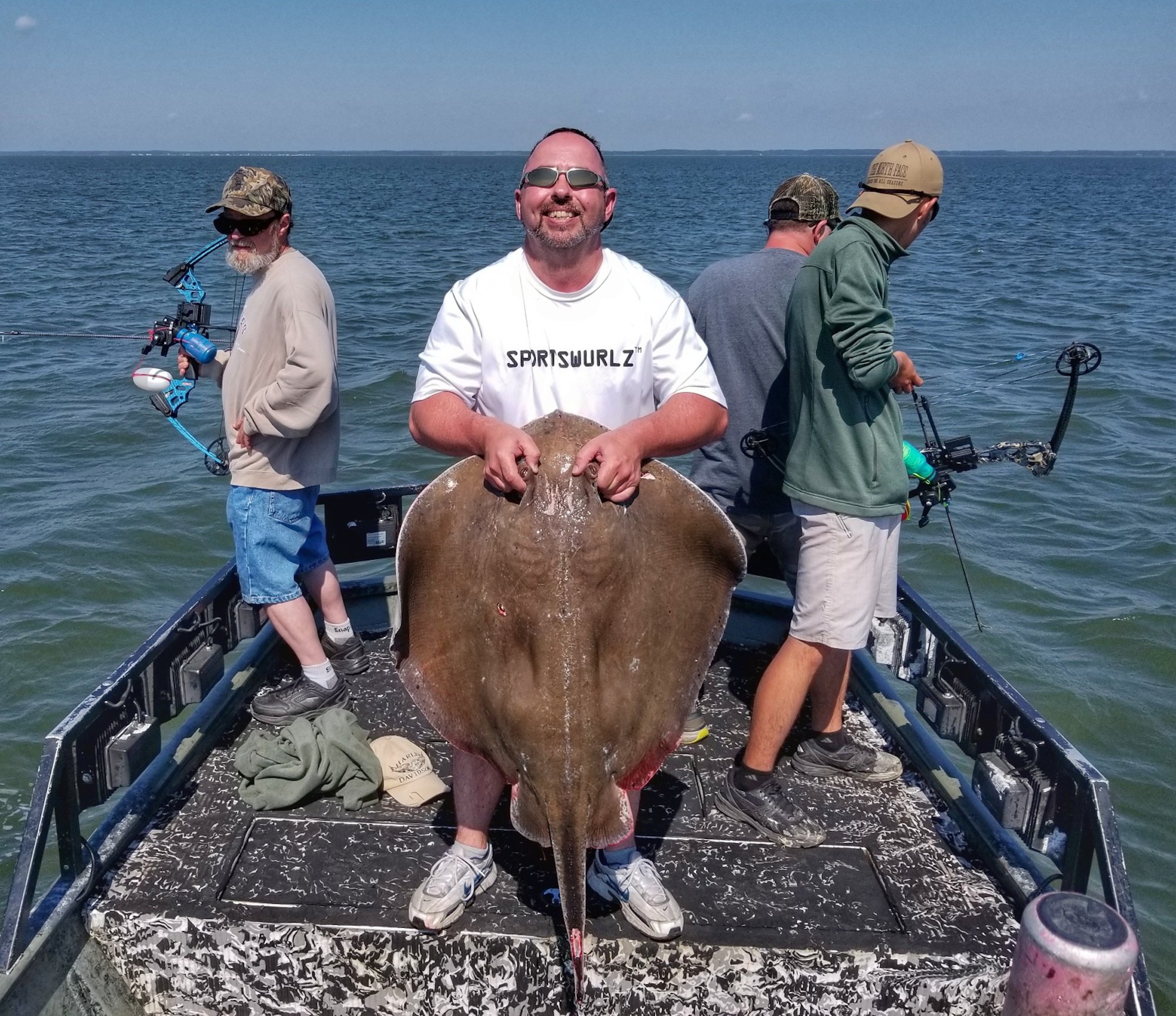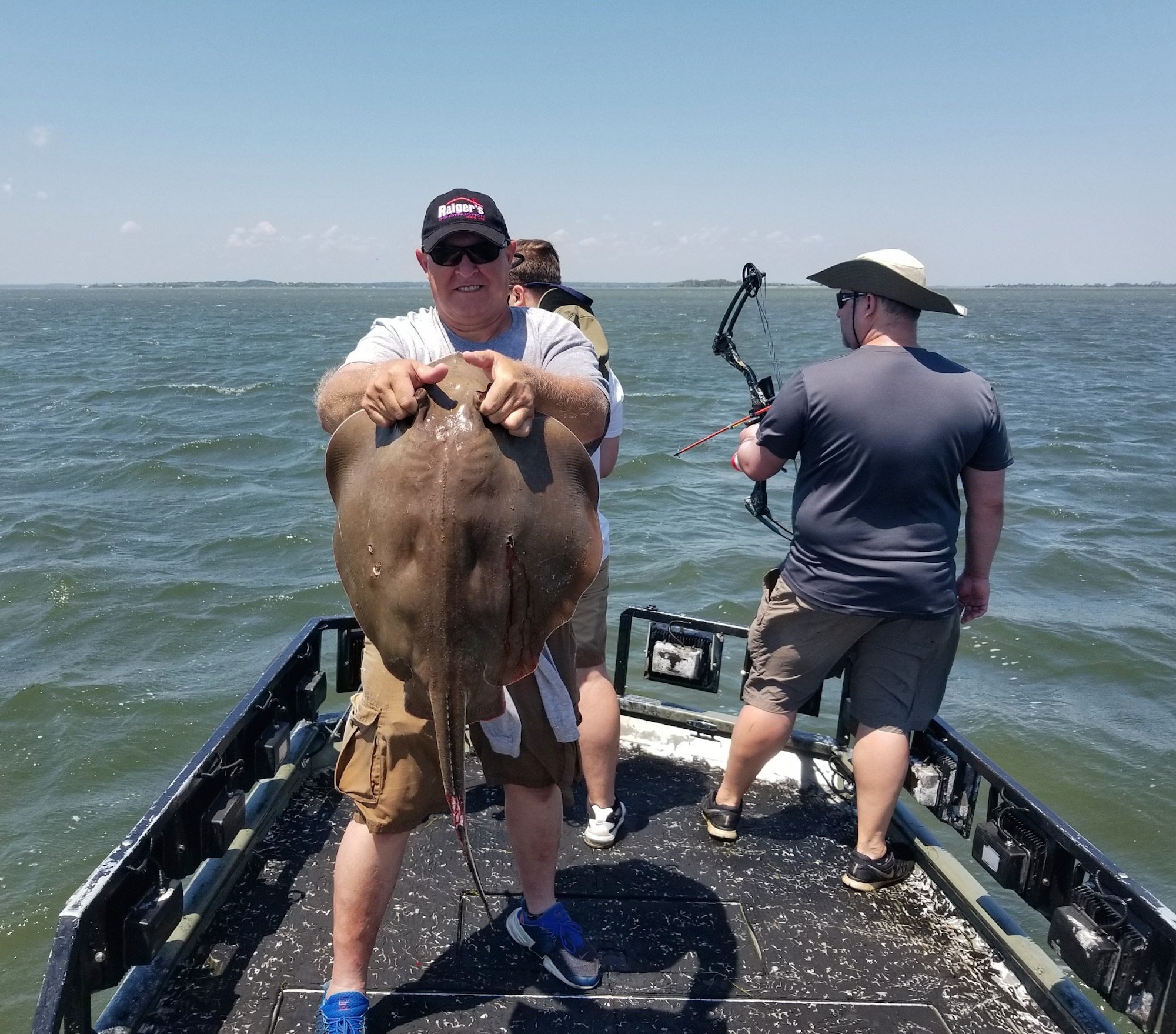 Captain Marc Spagnola of Dusk to Dawn Bowfishing reported super windy conditions on the bay this afternoon, but he has had two super days putting shooters on a mix of cow nosed and southern rays.