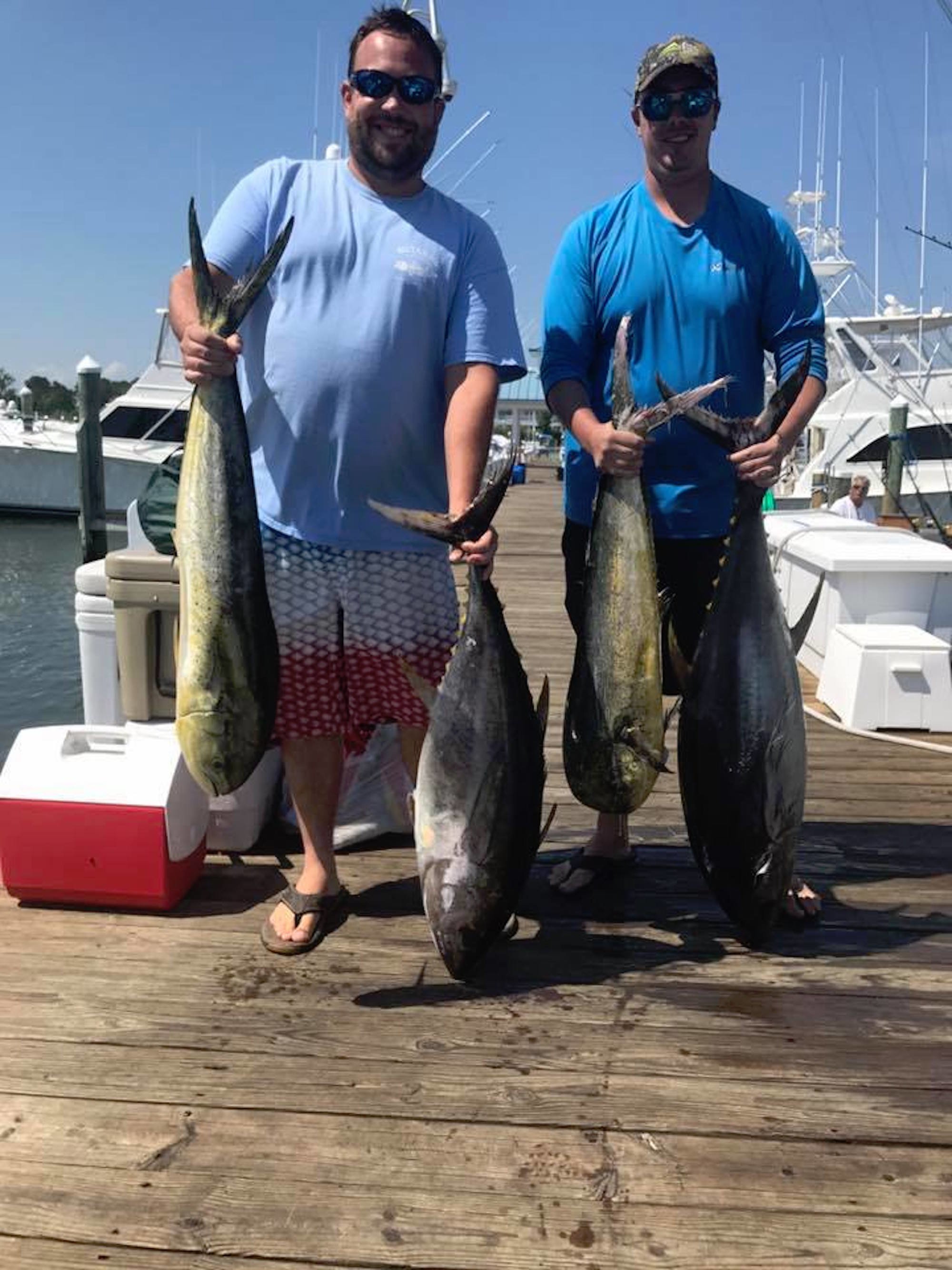 Captain Joe Drosey on Rhonda’s Osprey put some meat in the box today with two yellowfin tuna and two gaffer mahi.