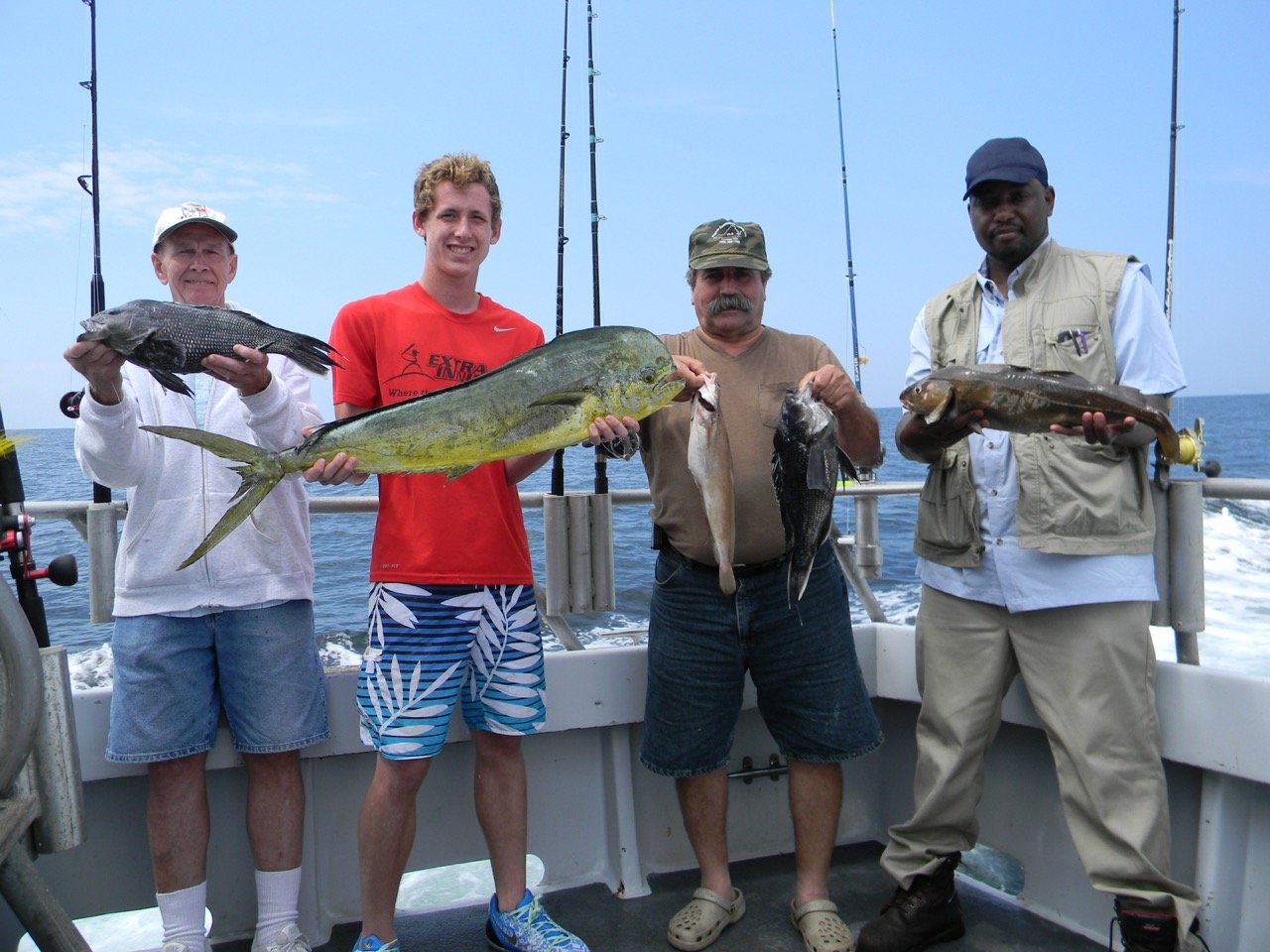 Captain Monty Hawkins on the Morning Star out of the Ocean City Fishing Center reported an odd summer variety today. It was his first day without a flounder in weeks, but he did put this crew on cod and ling along with sea bass and mahi.