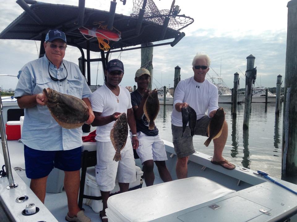 Captain John Prather on the Ocean City Guide Service out of the Ocean City Fishing Center had an afternoon trip to an inshore wreck and caught a few sea bass and some nice keeper flounder.