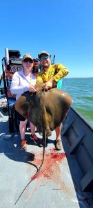 Captain Marc Spagnola of Dusk to Dawn Bowfishing saw some good shooting today for his clients and they hit their marks on some cow nosed and southern rays.