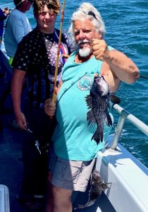 Captain Monty Hawkins of the Morning Star will most likely be making reef pyramids for the next couple of days, but today it was some good fishing for sea bass on board.