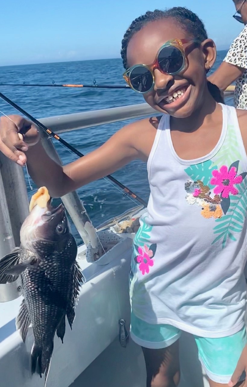 Young Miss Phoenix Walker had fun. It remains to be seen whether she’ll help clean fish or not!