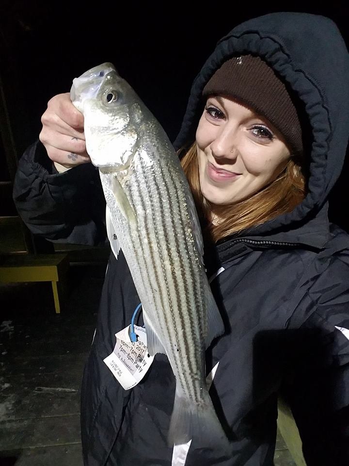 Amber Smoker is a regular on the downtown fishing scene and she was at the Pier having a great time with the throwback rockfish. Amber said they were “hitting hard and almost every cast”.