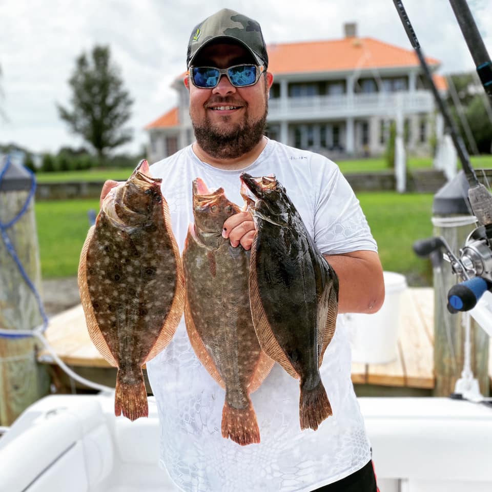 Chris Rodriguez was just one fish short of a limit today when he put three nice keeper flounder in the box.